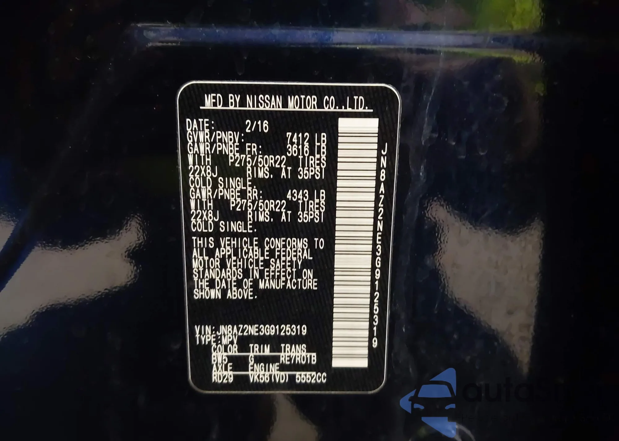 • VIN JN8AZ2NE3G9125319