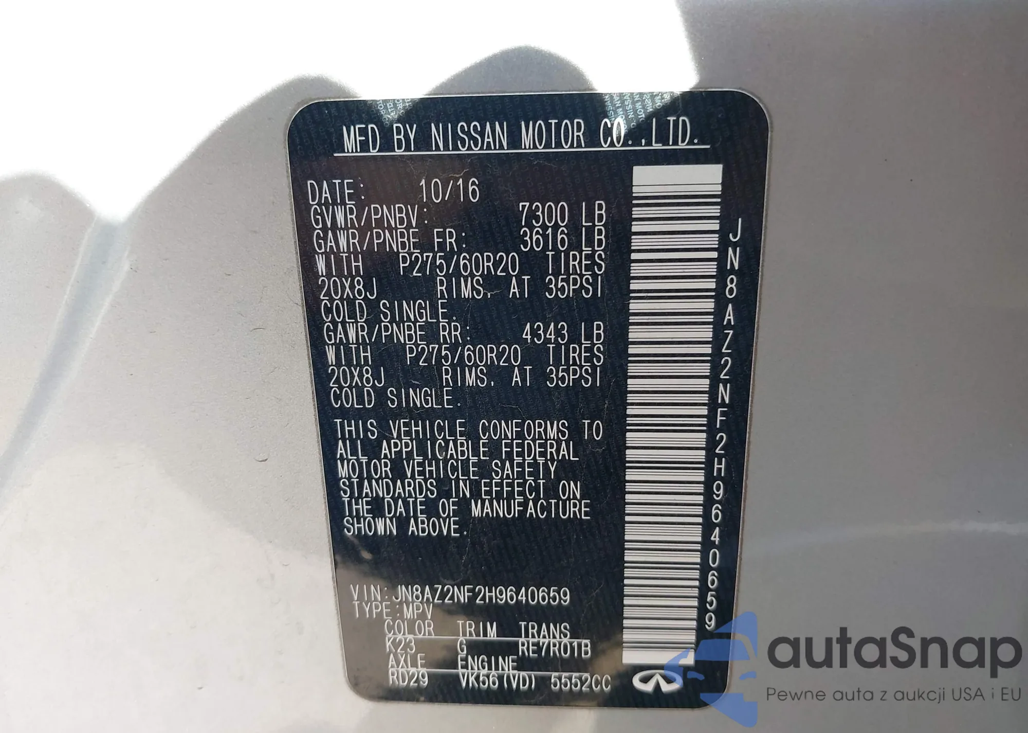 • VIN JN8AZ2NF2H9640659