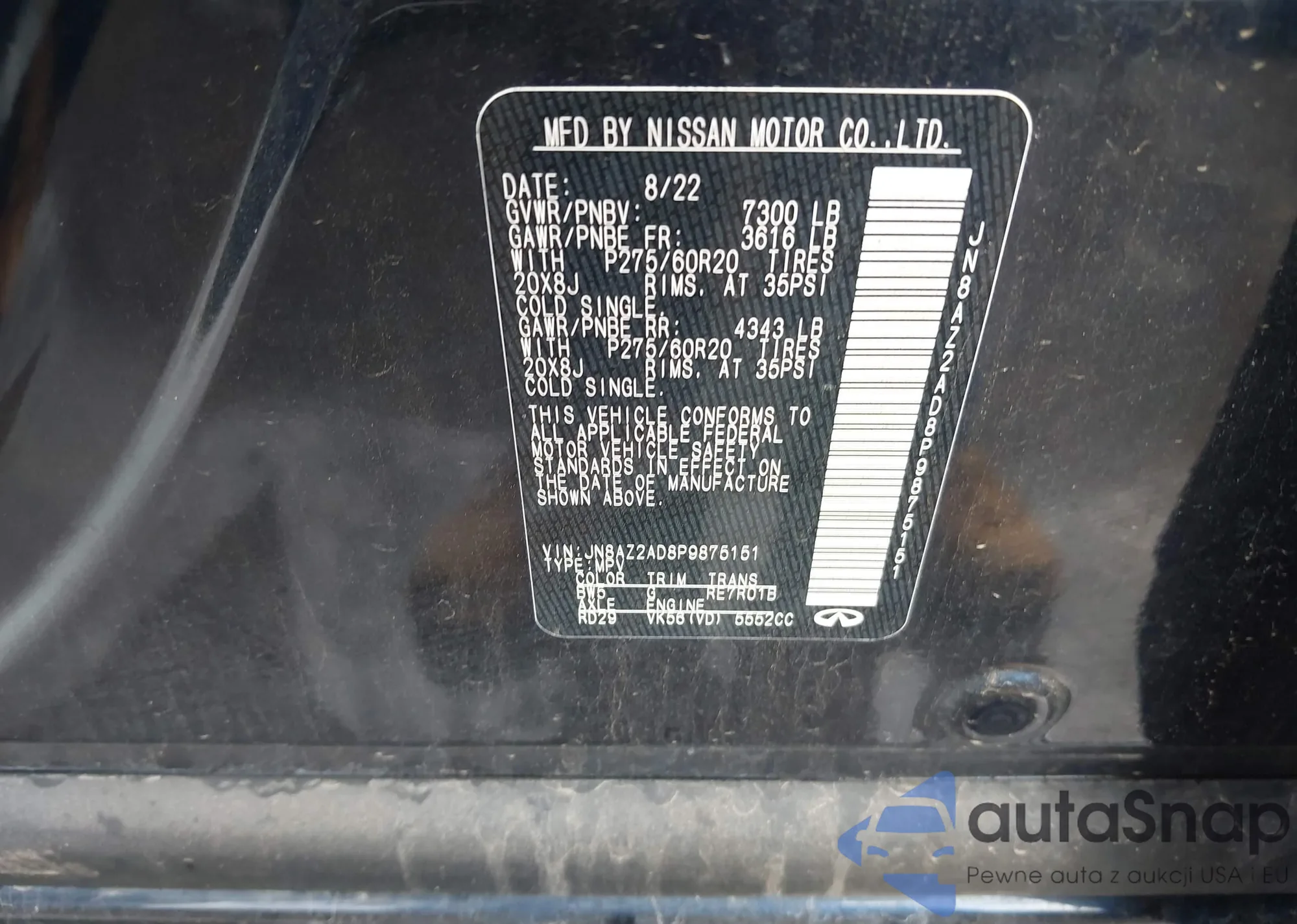 • VIN JN8AZ2AD8P9875151