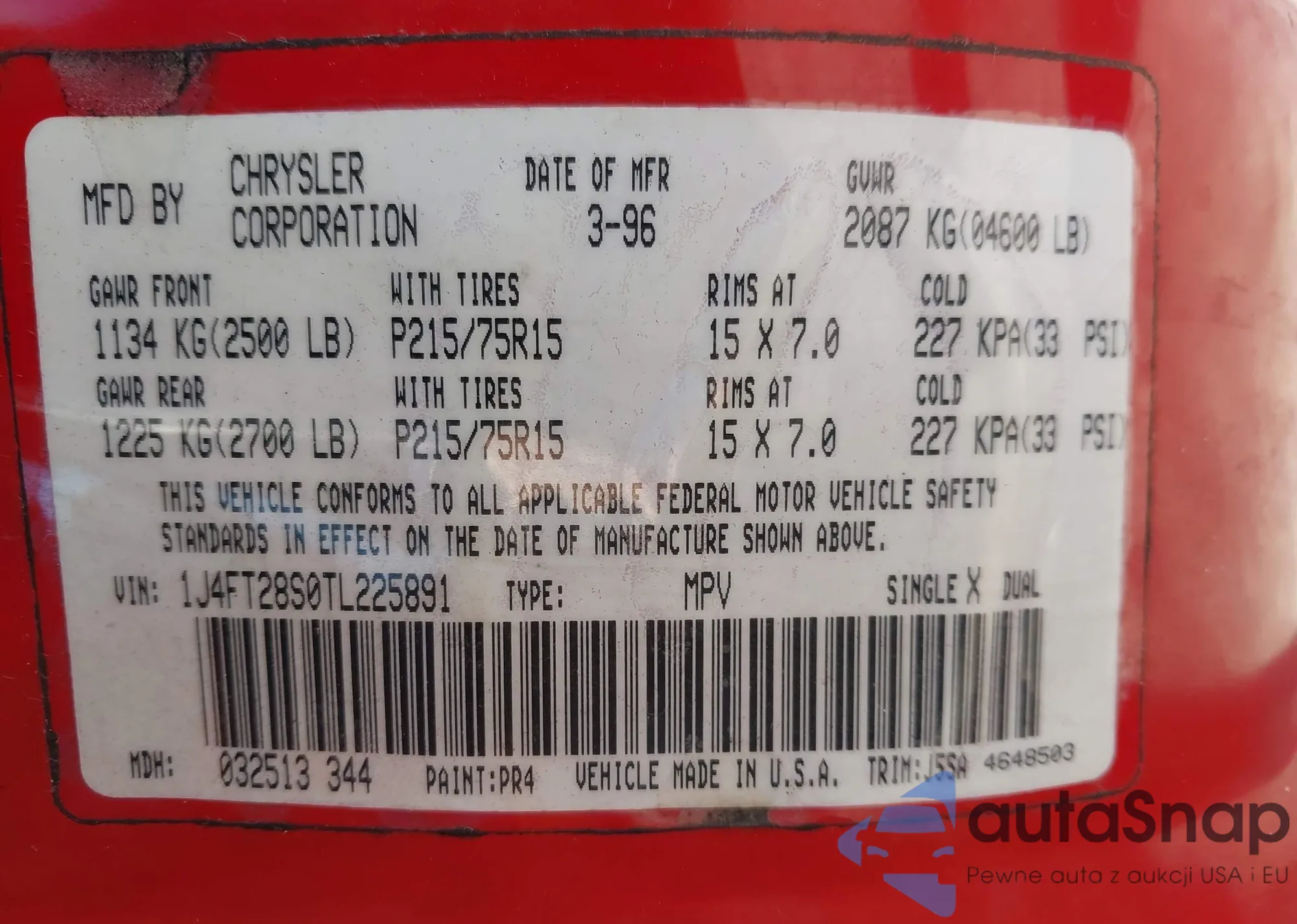 • VIN 1J4FT28S0TL225891