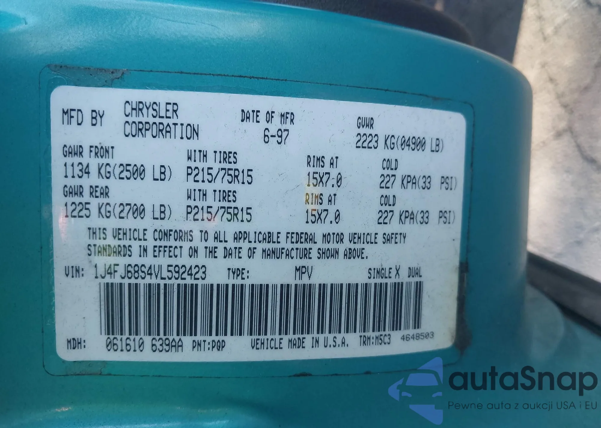 • VIN 1J4FJ68S4VL592423