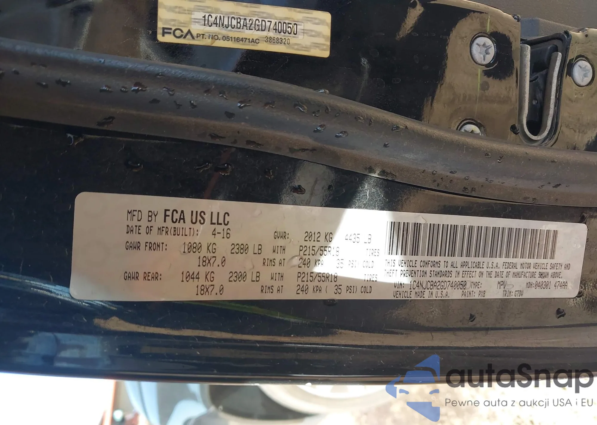 • VIN 1C4NJCBA2GD740050