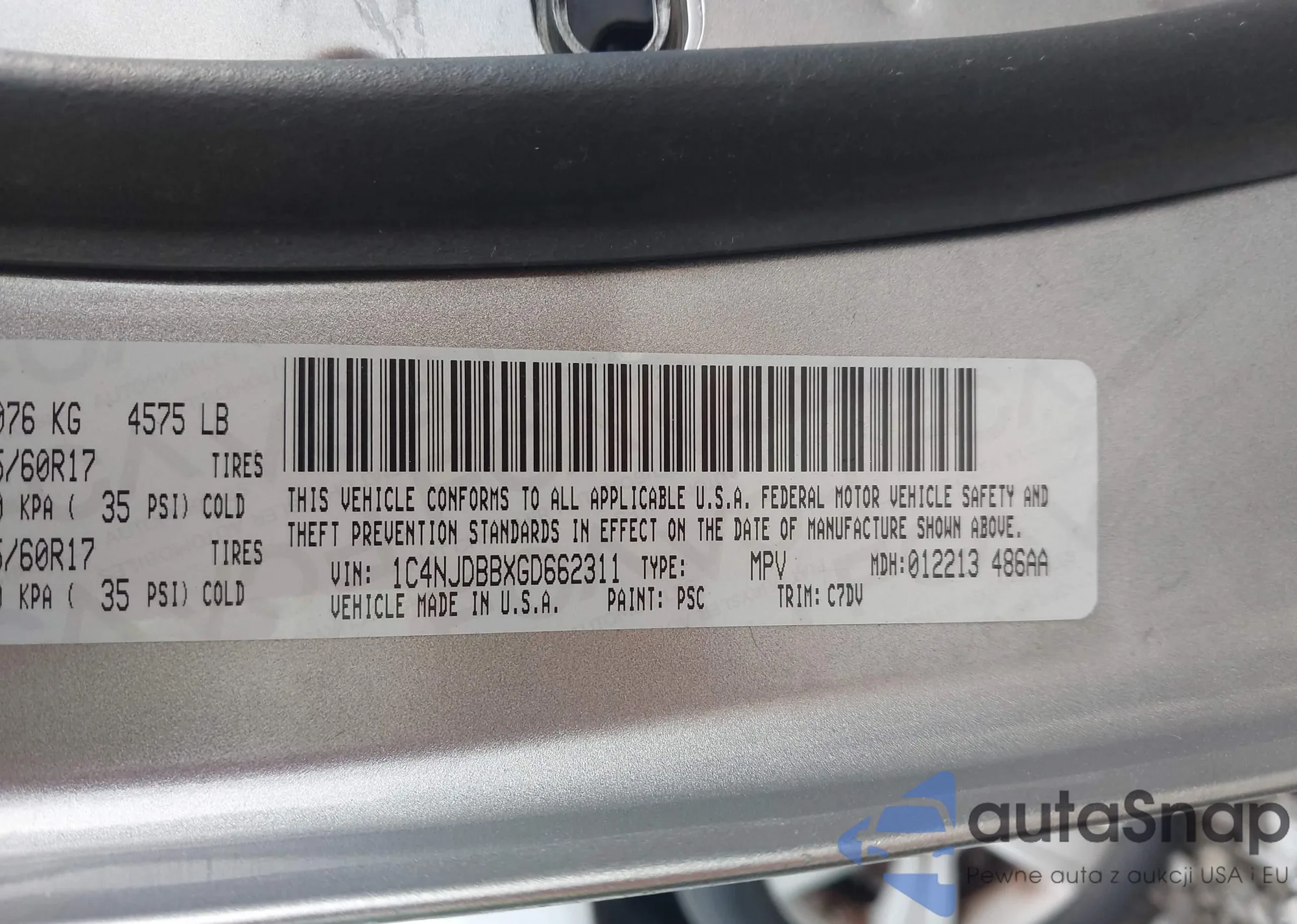 LOT: 43687609 VIN: 1C4NJCEB7GD599951