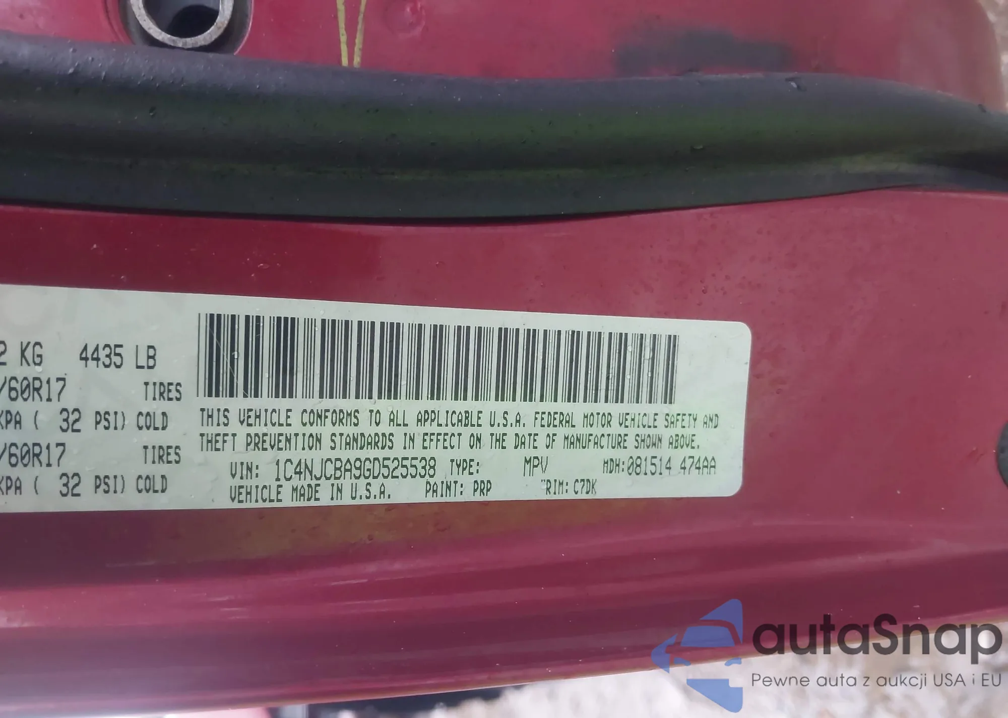 • VIN 1C4NJCBA9GD525538