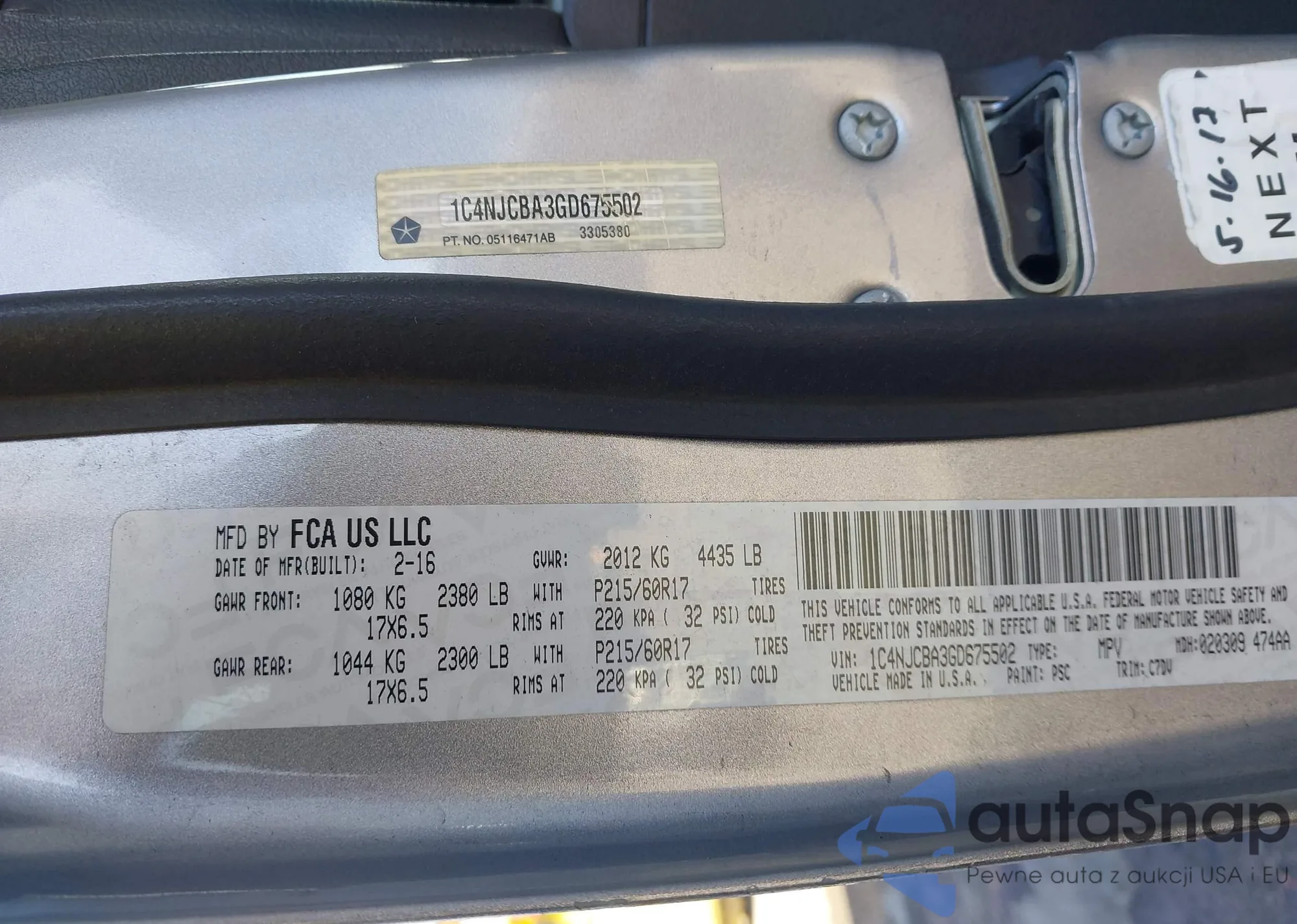 • VIN 1C4NJCBA3GD675502