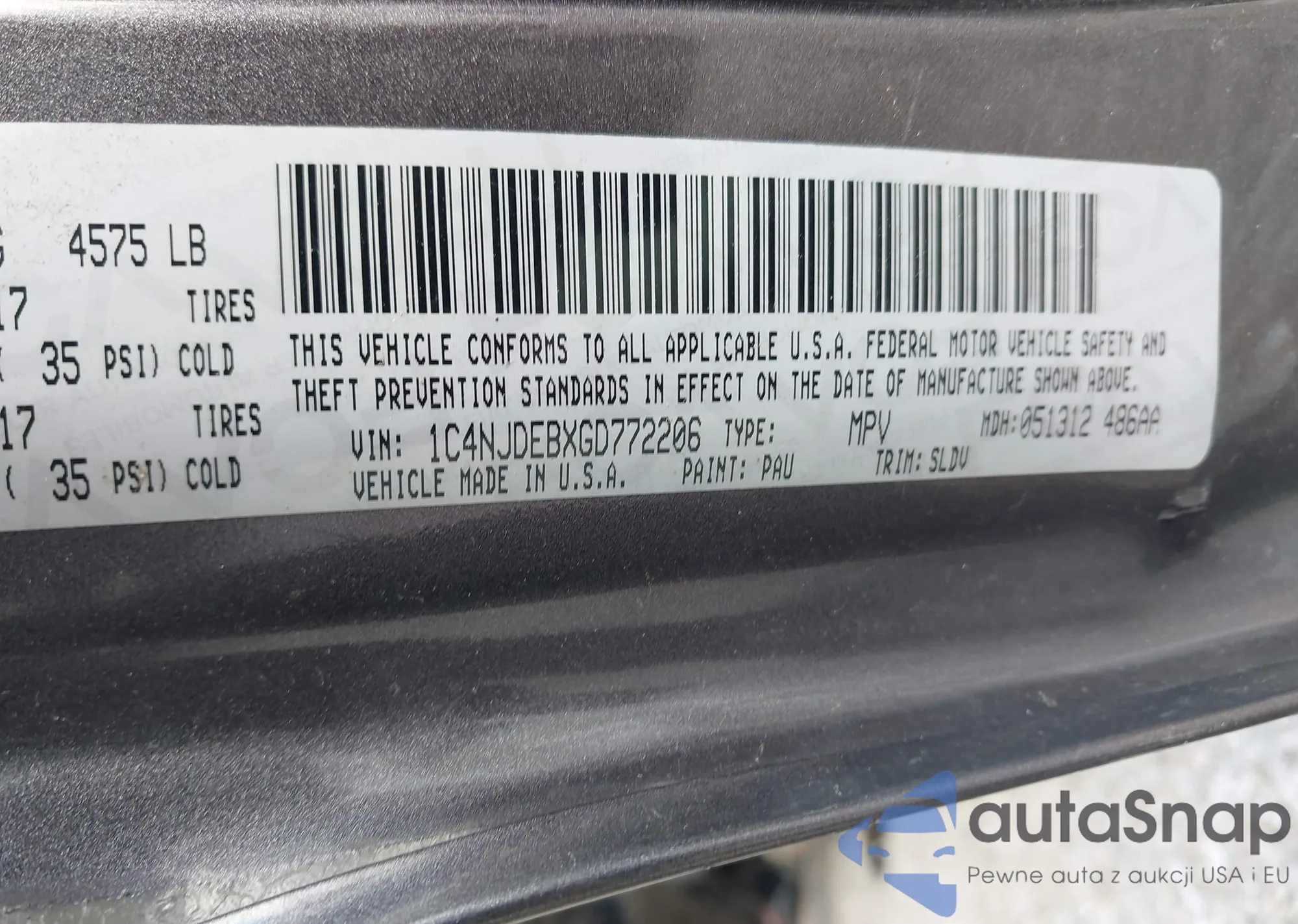 LOT: 44591769 VIN: 1C4NJCBA3GD675502
