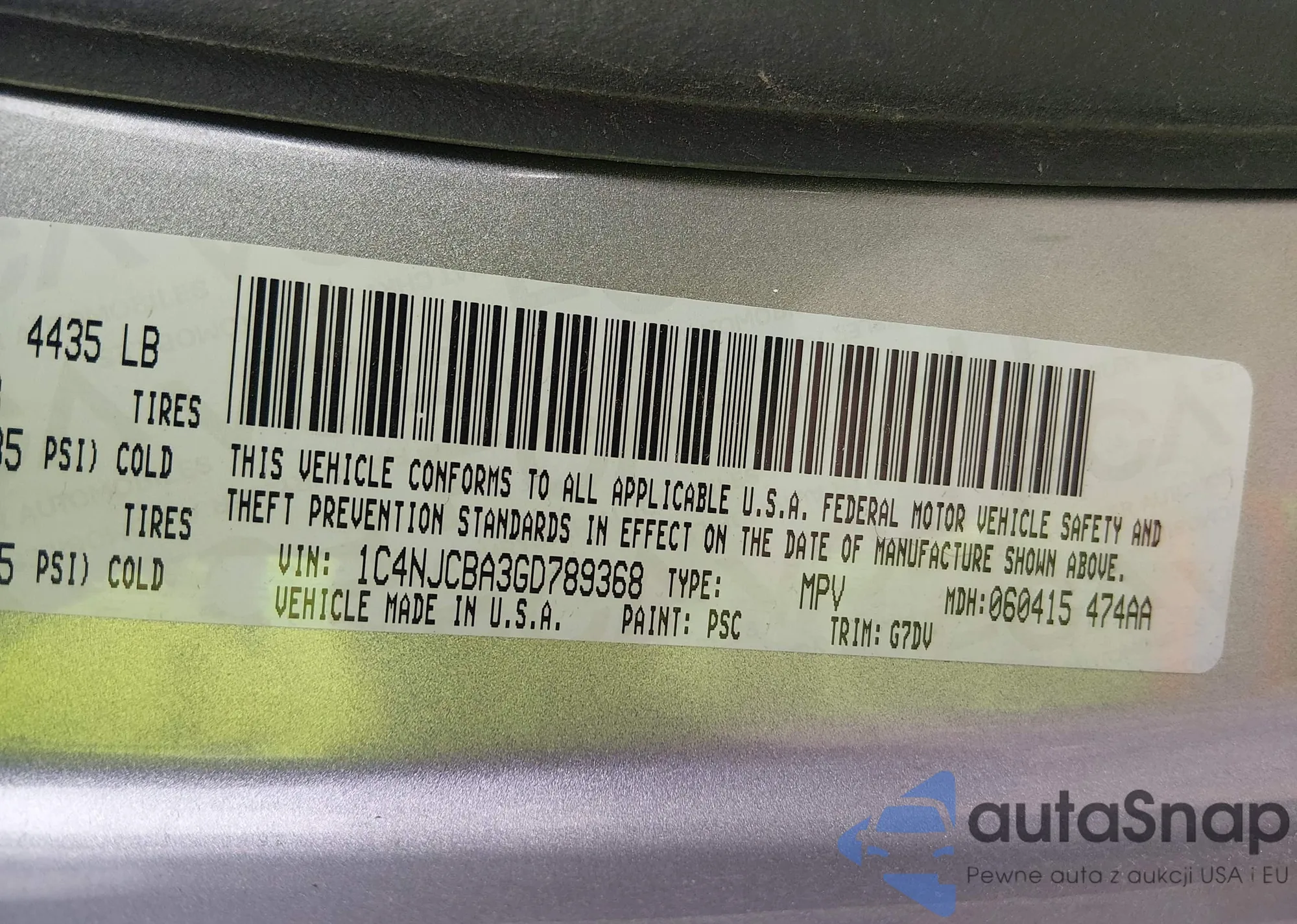 • VIN 1C4NJCBA3GD789368