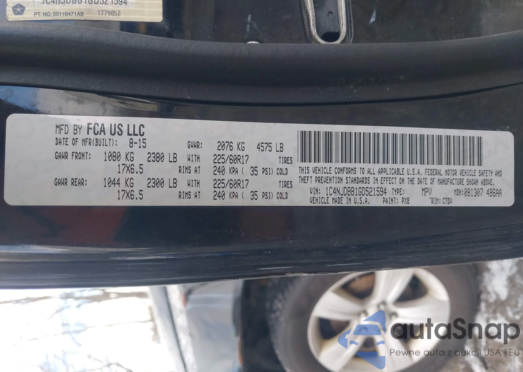 LOT: 44592089 VIN: 1C4NJCBA1GD665180