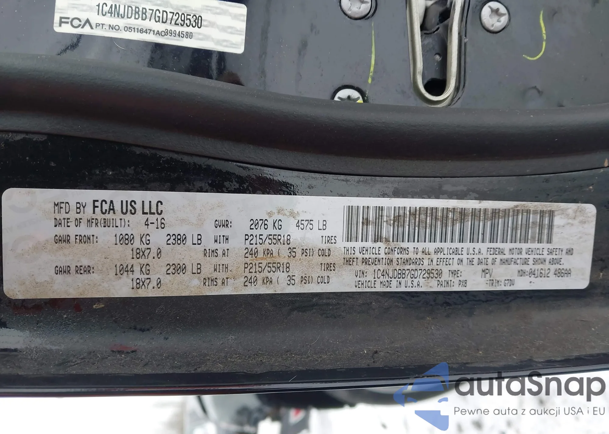 LOT: 44129319 VIN: 1C4NJDBB7GD729530