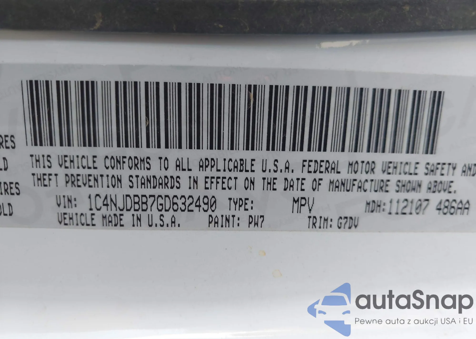 • VIN 1C4NJDBB7GD632490