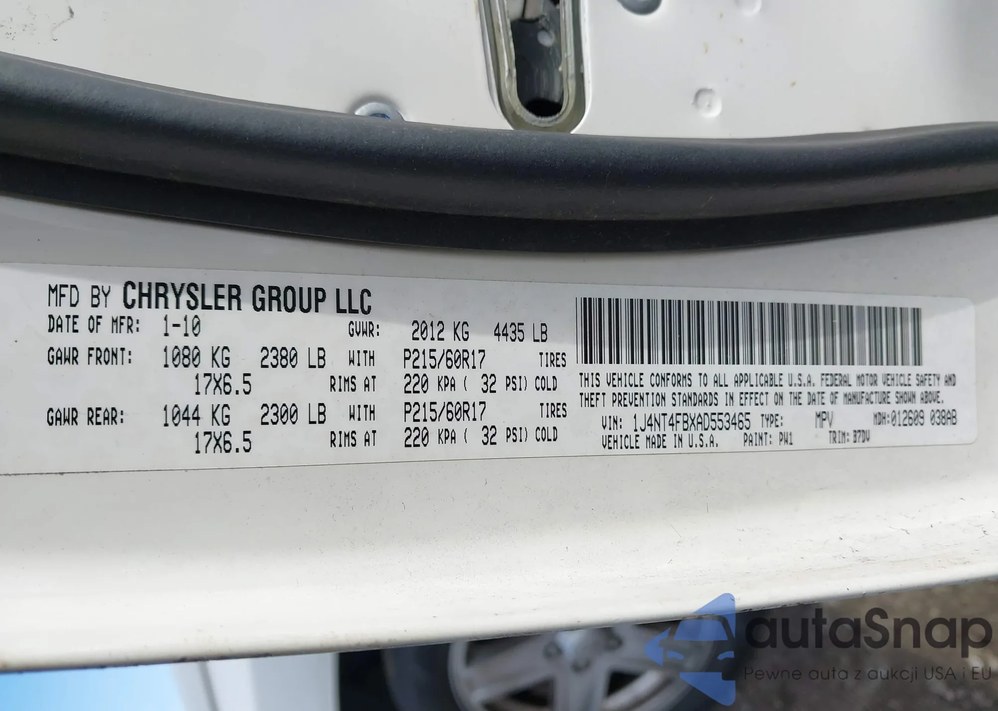 LOT: 44115688 VIN: 1J4NT4FBXAD553465