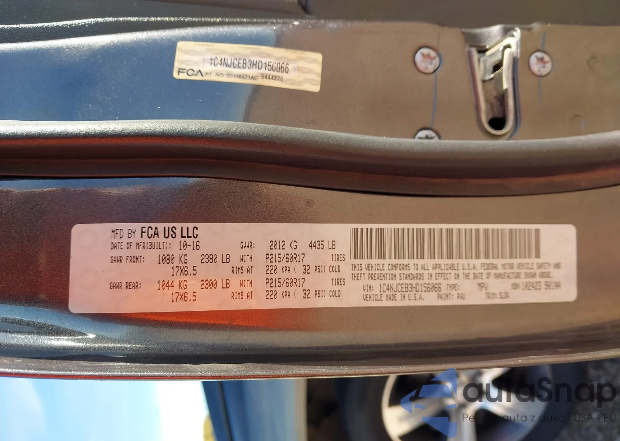 LOT: 43608884 VIN: 1C4NJCEB3HD156066