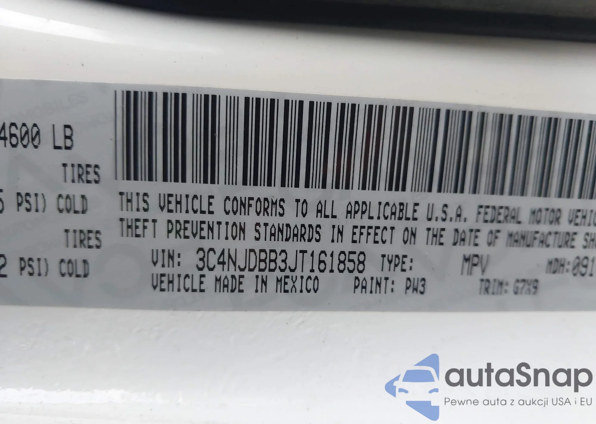 • VIN 3C4NJDBB3JT161858