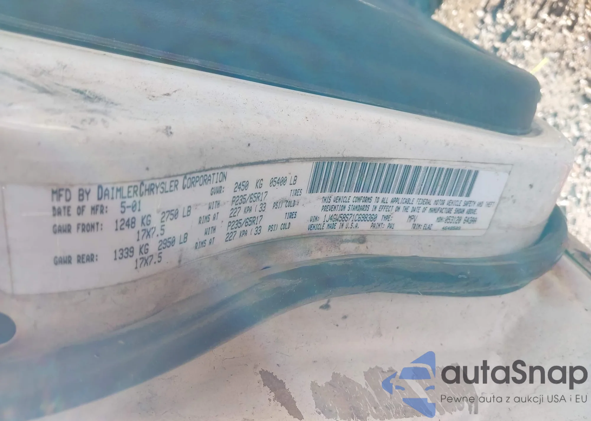 2001 Jeep Grand Cherokee Limited из США, поврежденный, VIN 1J4GW58S71C698360