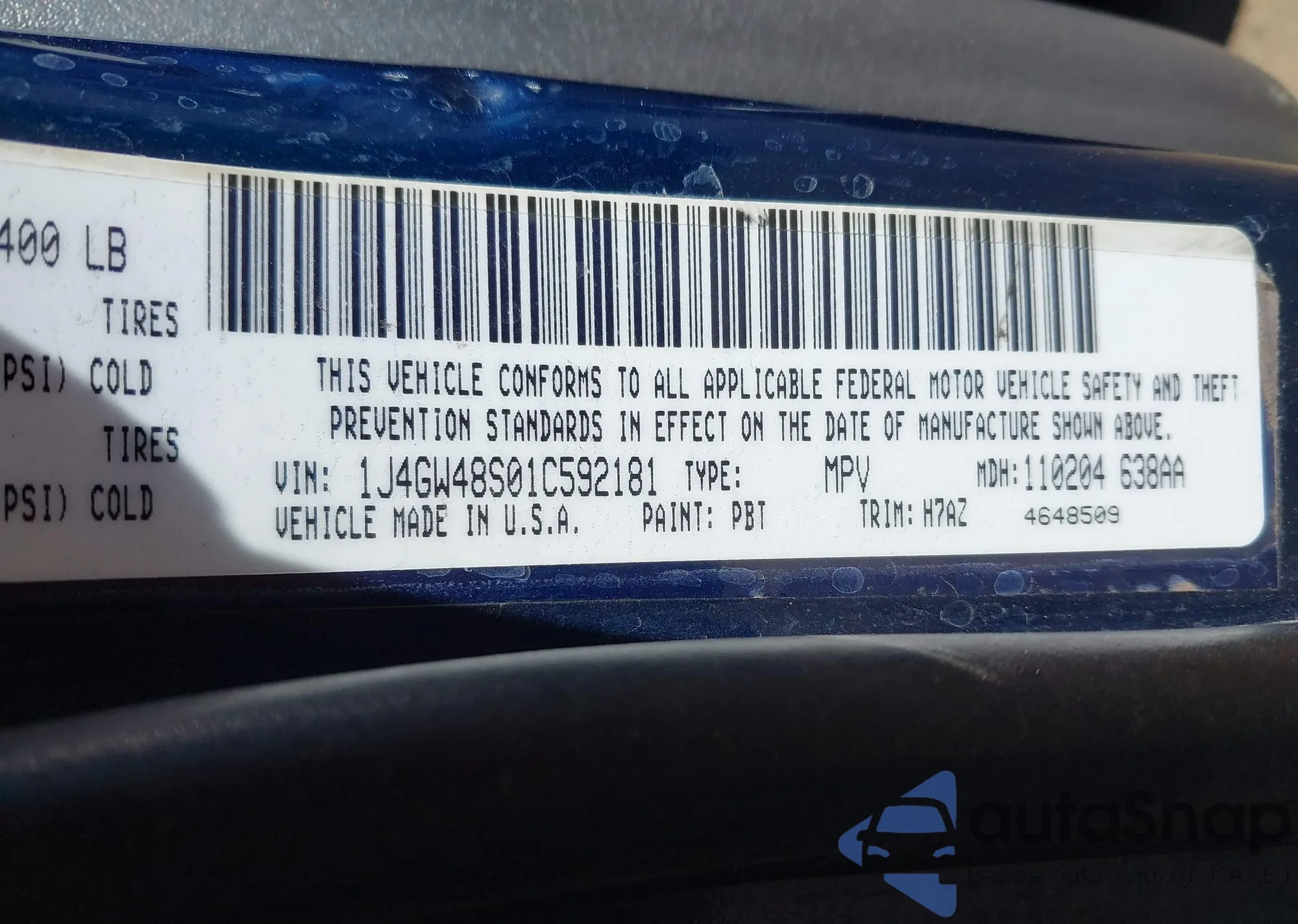 LOT: 43595504 VIN: 1J4GW48S01C592181
