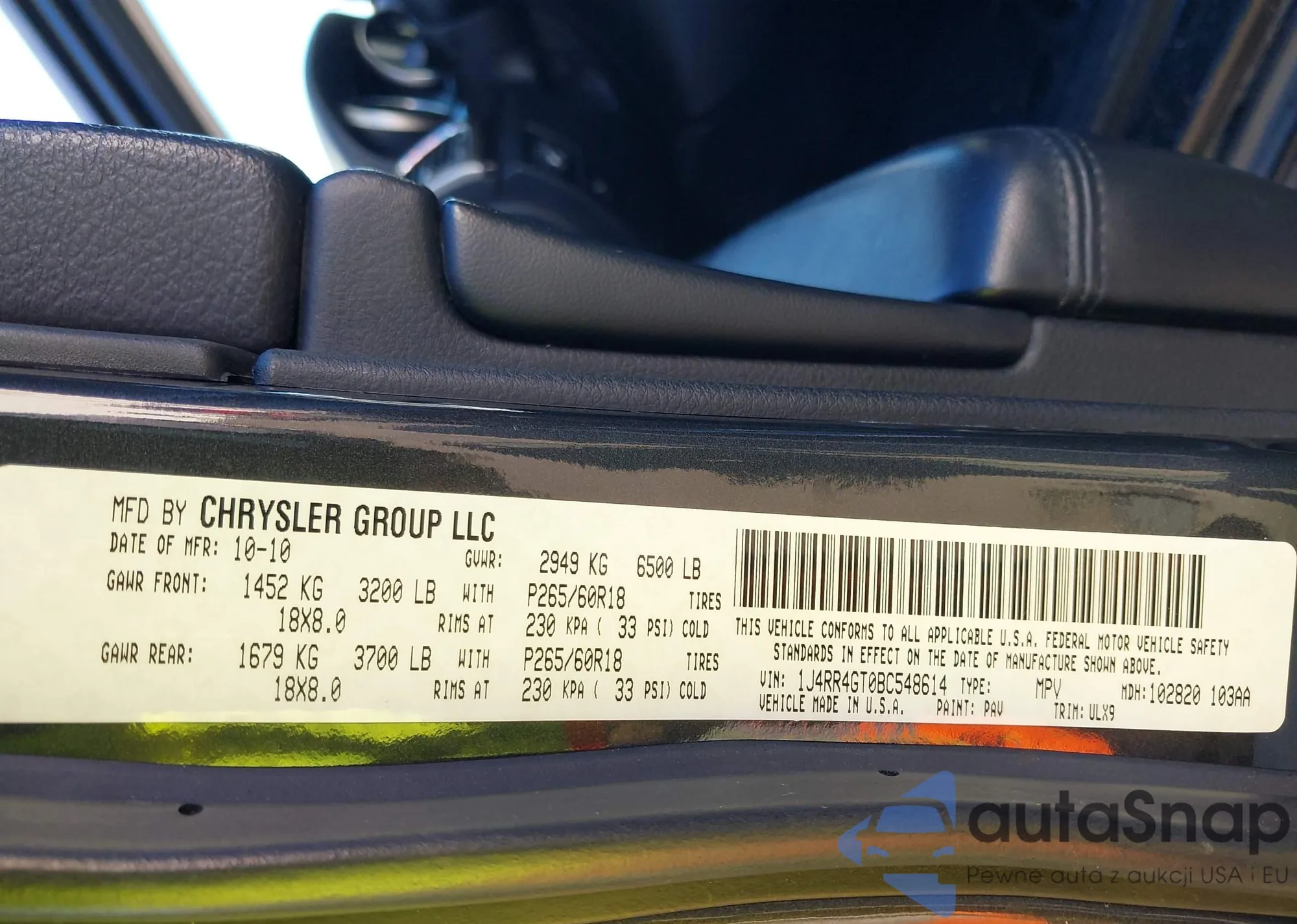 • VIN 1C4RJFAT7CC103130