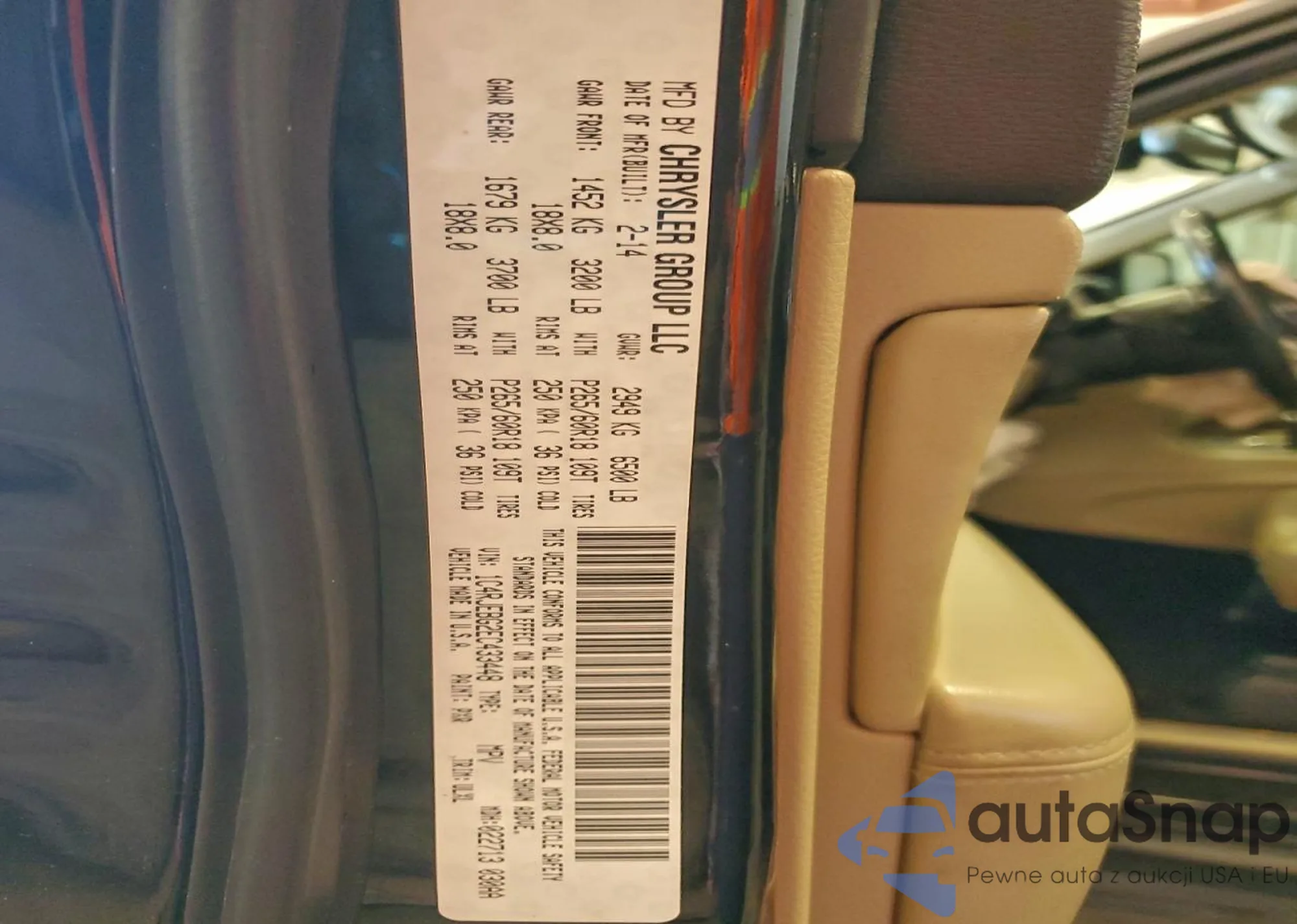 • VIN 1C4RJFAG0CC263594