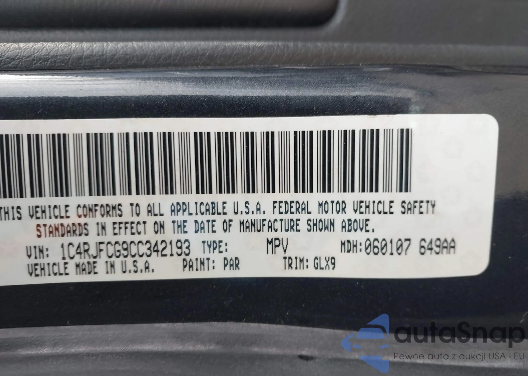 • VIN 1C4RJFAG7CC175030