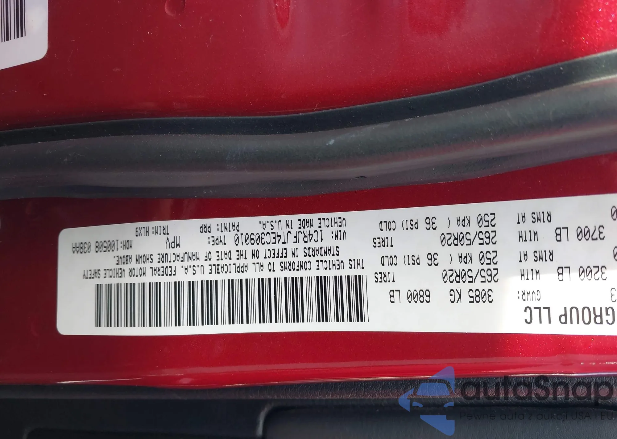 • VIN 1C4RJFJT4EC309010