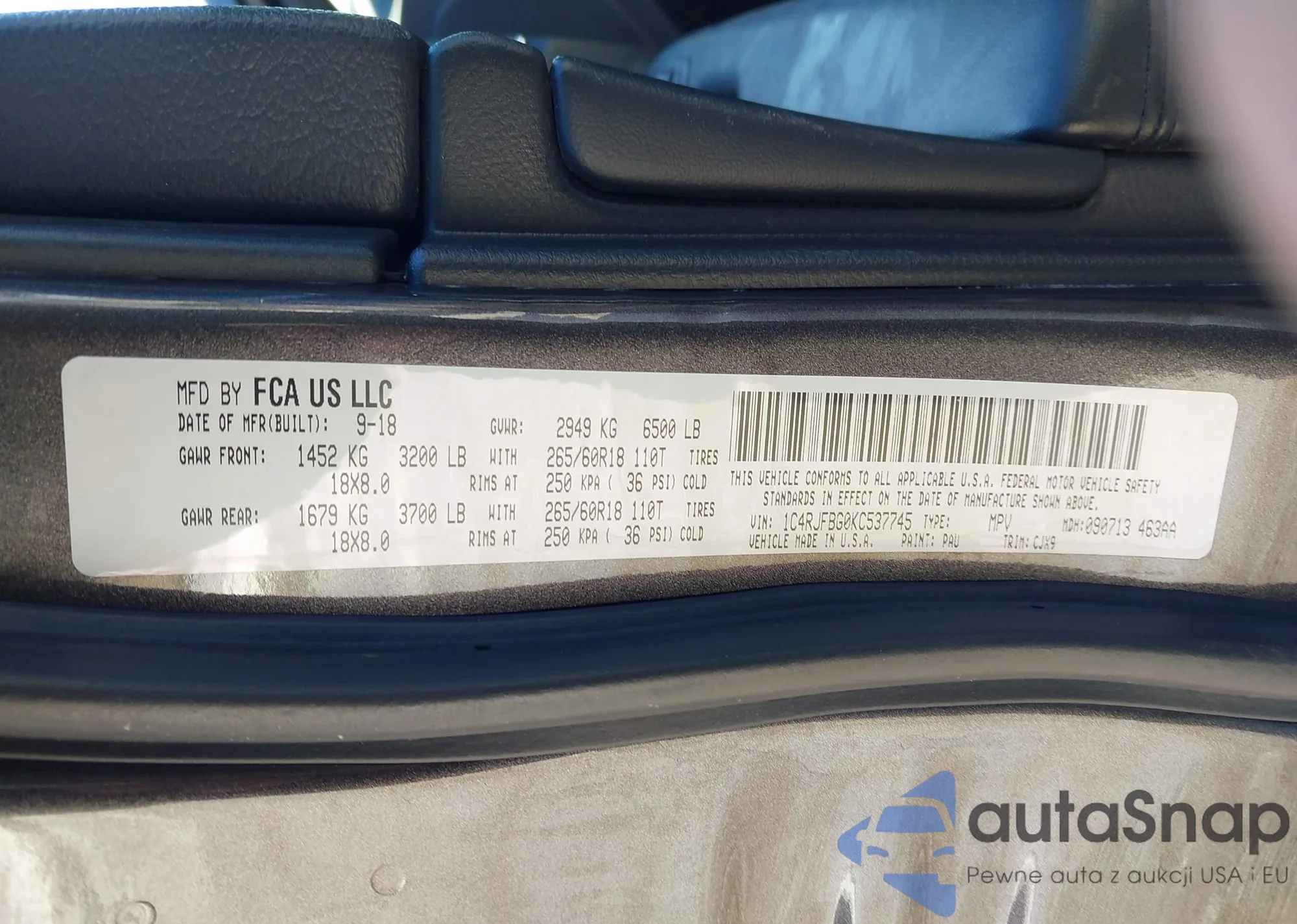 • VIN 1C4RJFBG0KC537745