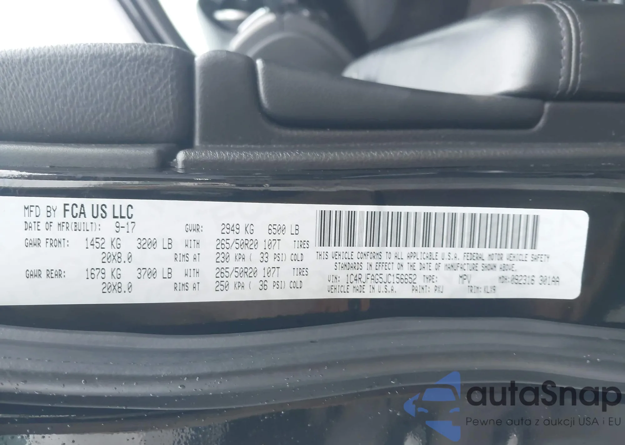 • VIN 1C4RJFAG5JC156652