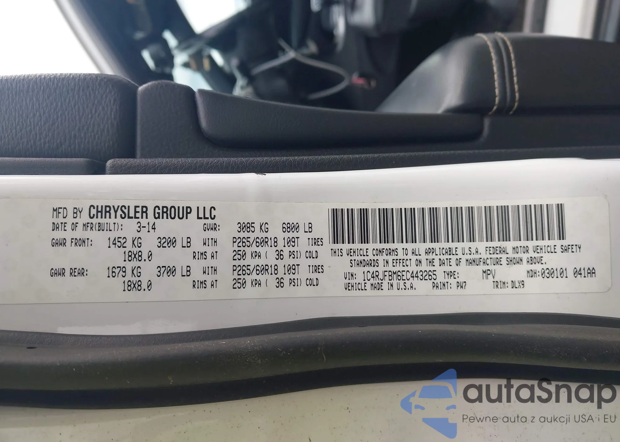 • VIN 1C4RJFBM6EC443265