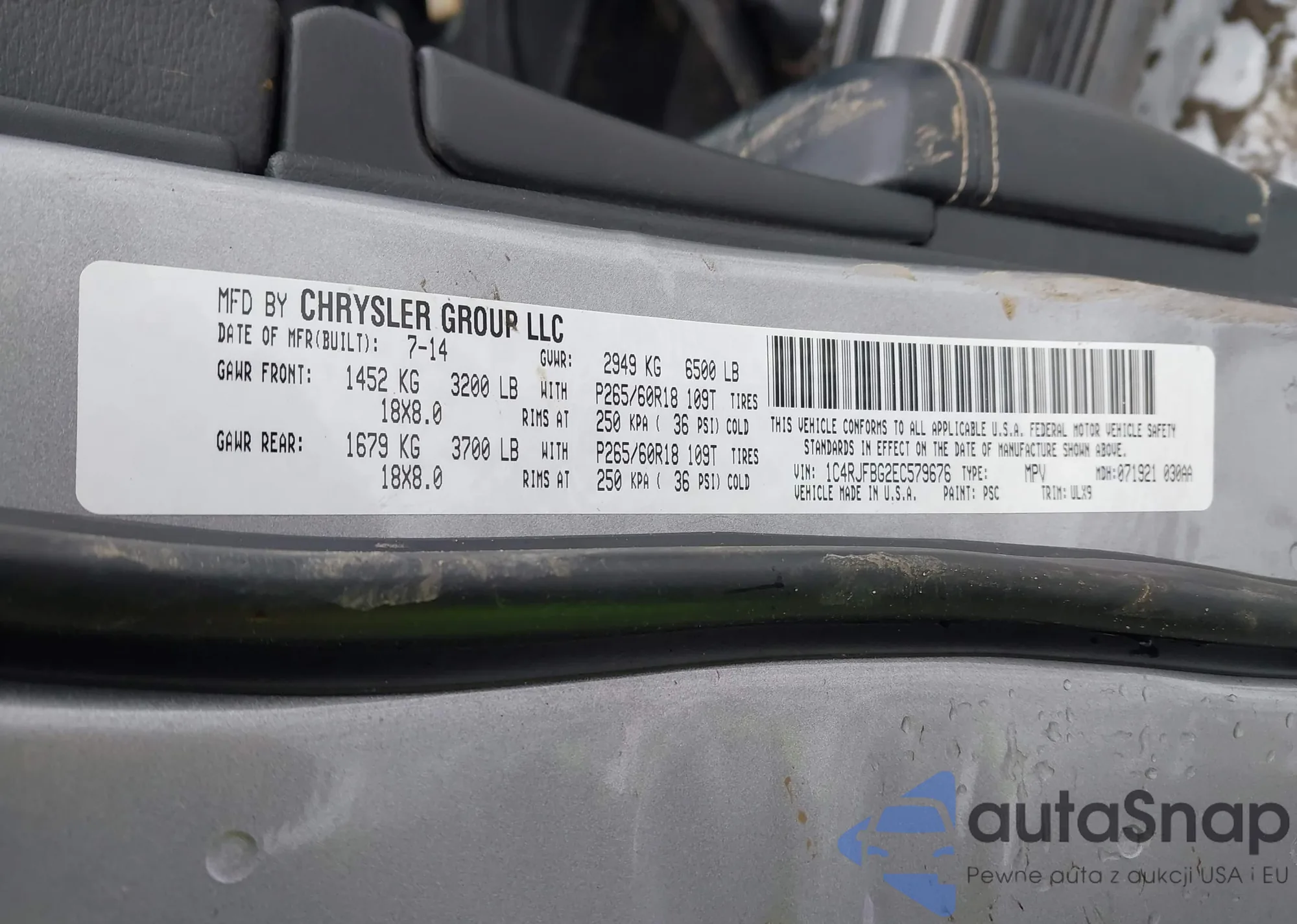 • VIN 1C4RJFBG2EC579676