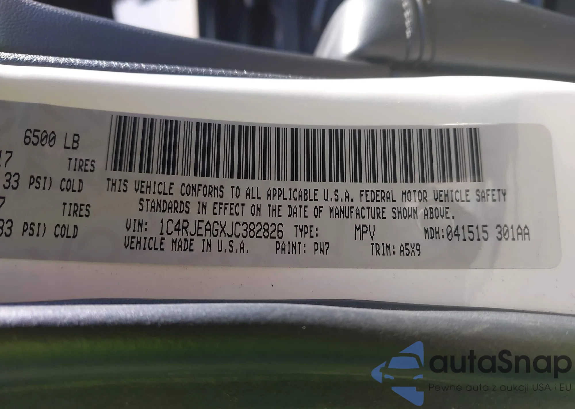 • VIN 1C4RJEAGXJC382826