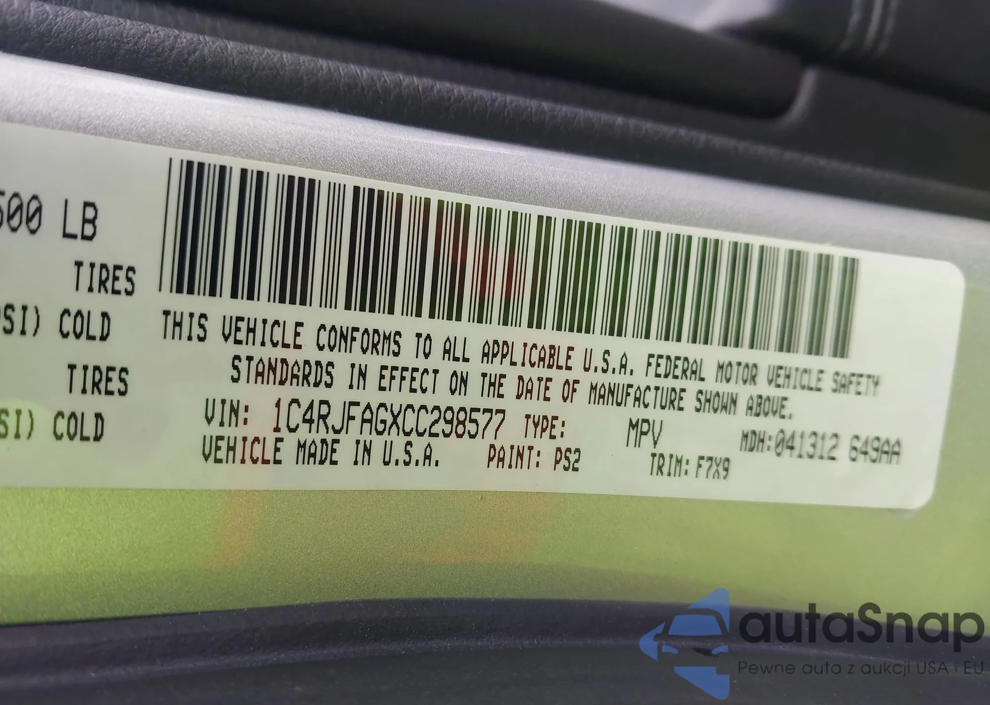 • VIN 1C4RJFAGXCC298577