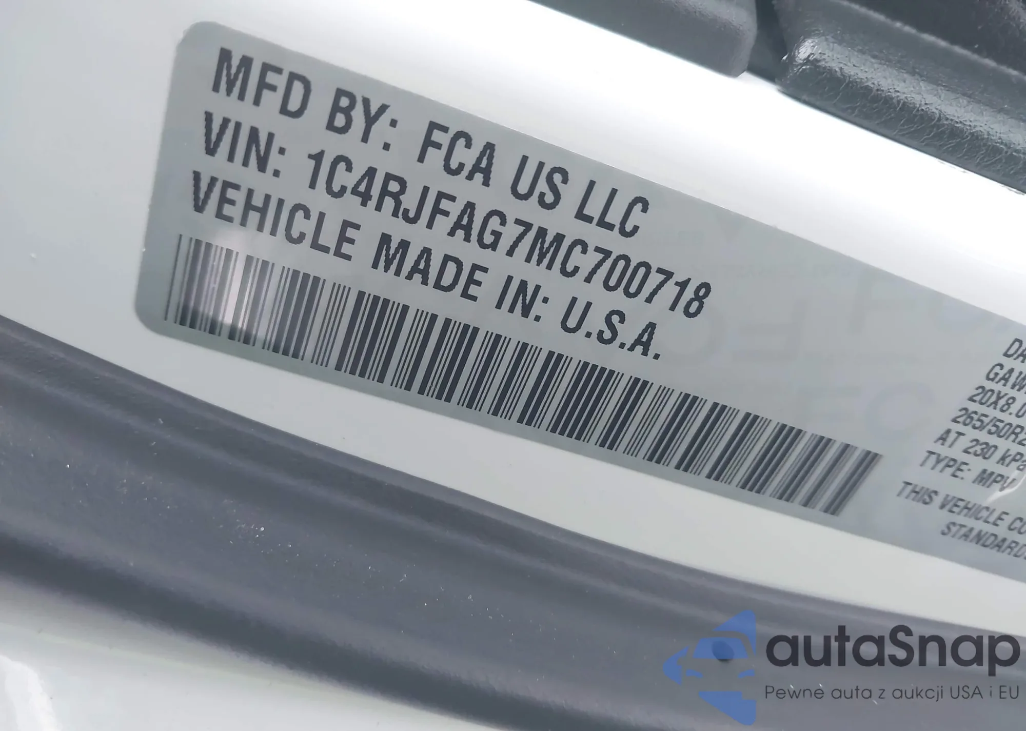• VIN 1C4RJFAG7MC700718