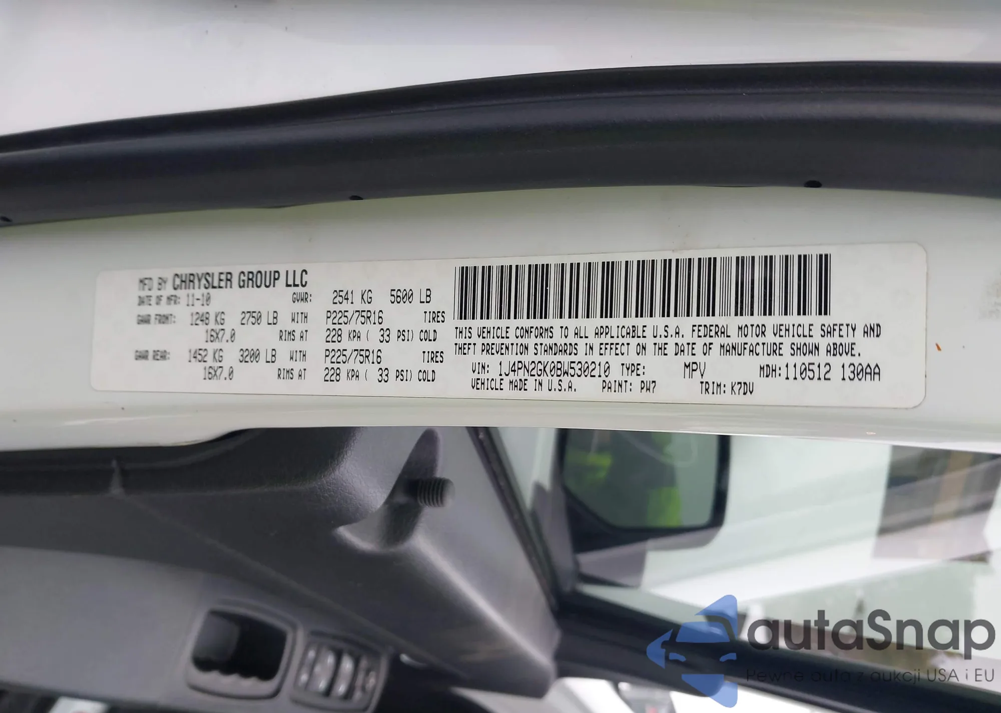 • VIN 1J4PP2GK6BW571855