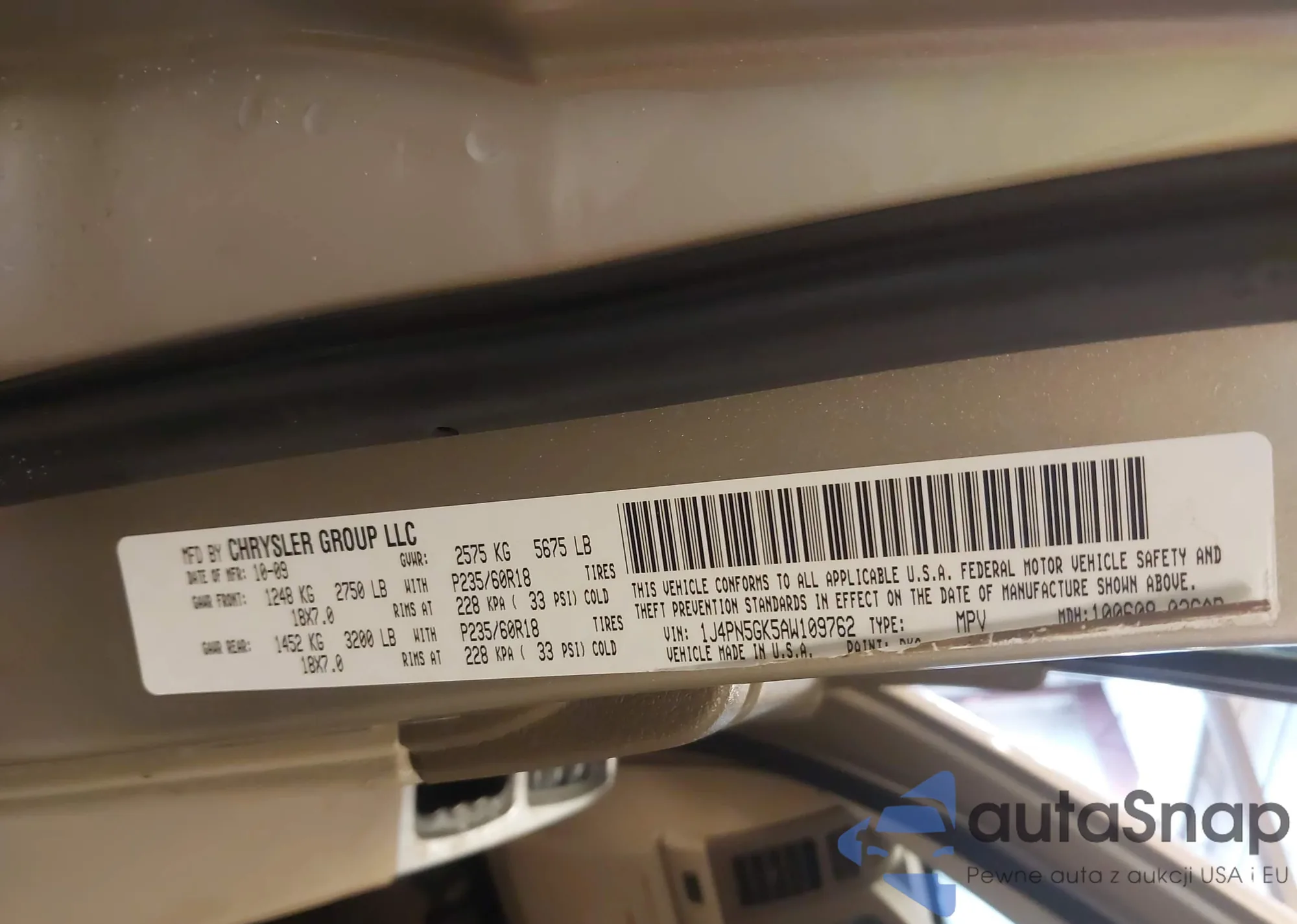 LOT: 44188305 VIN: 1J4PN5GK5AW109762