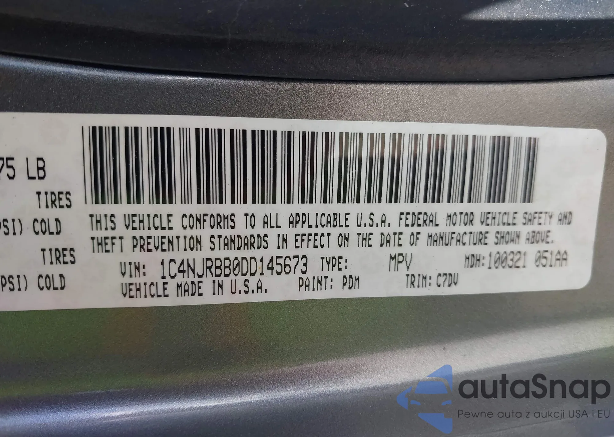 • VIN 1C4NJRBB0DD145673