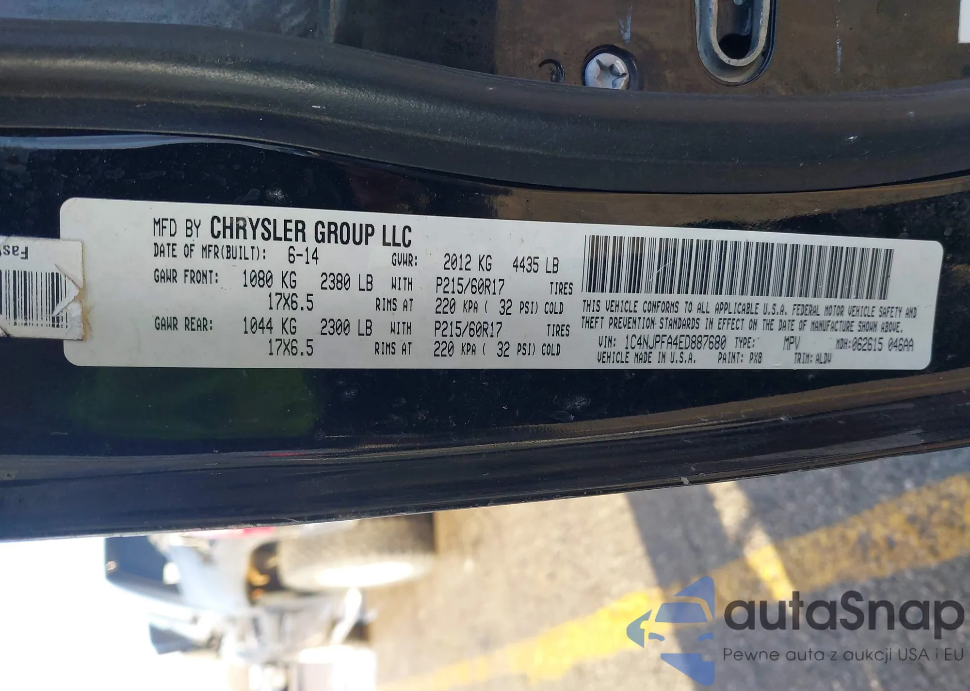 LOT: 43994078 VIN: 1C4NJPFA4ED887680