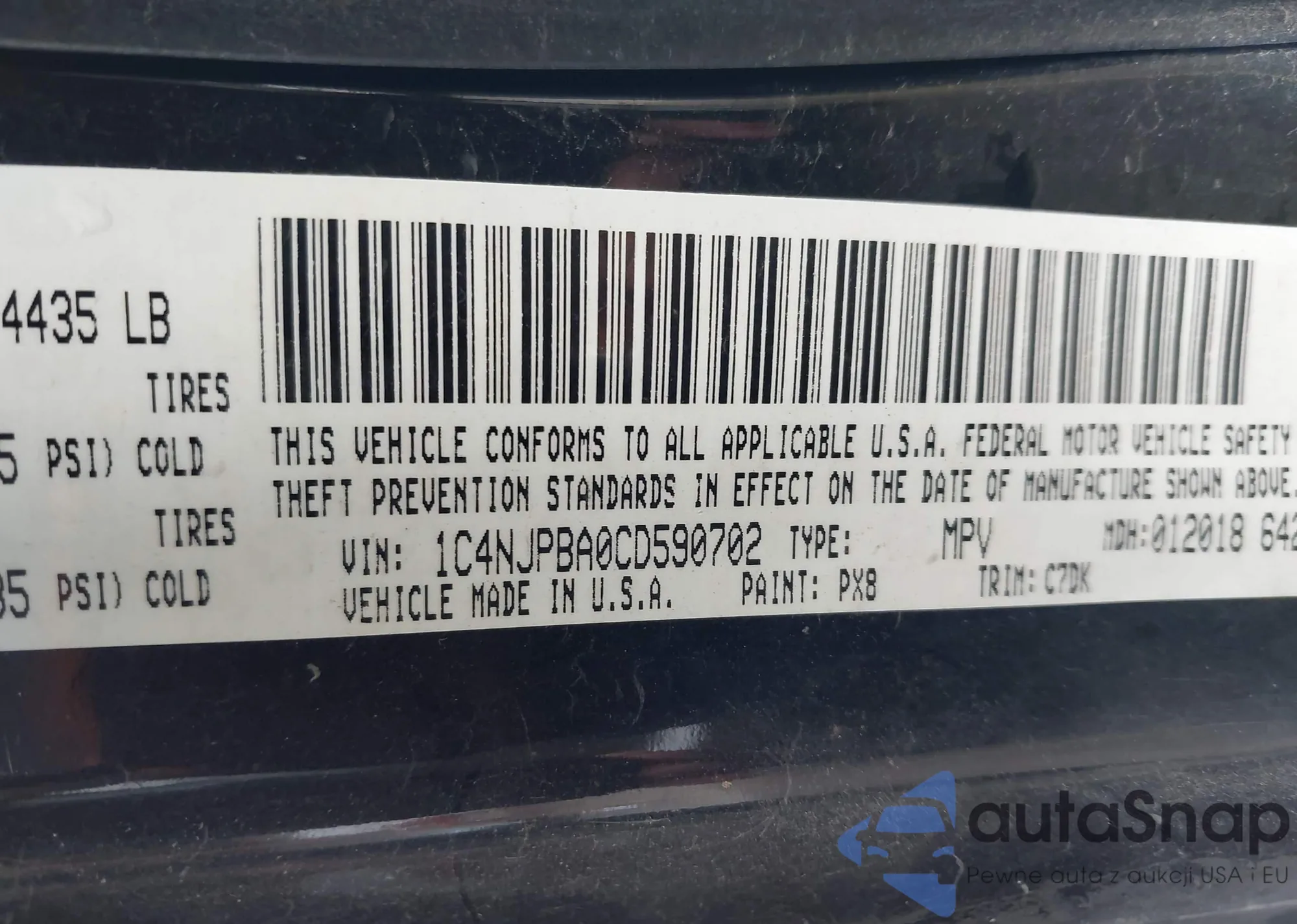 • VIN 1C4NJPBA0HD134724