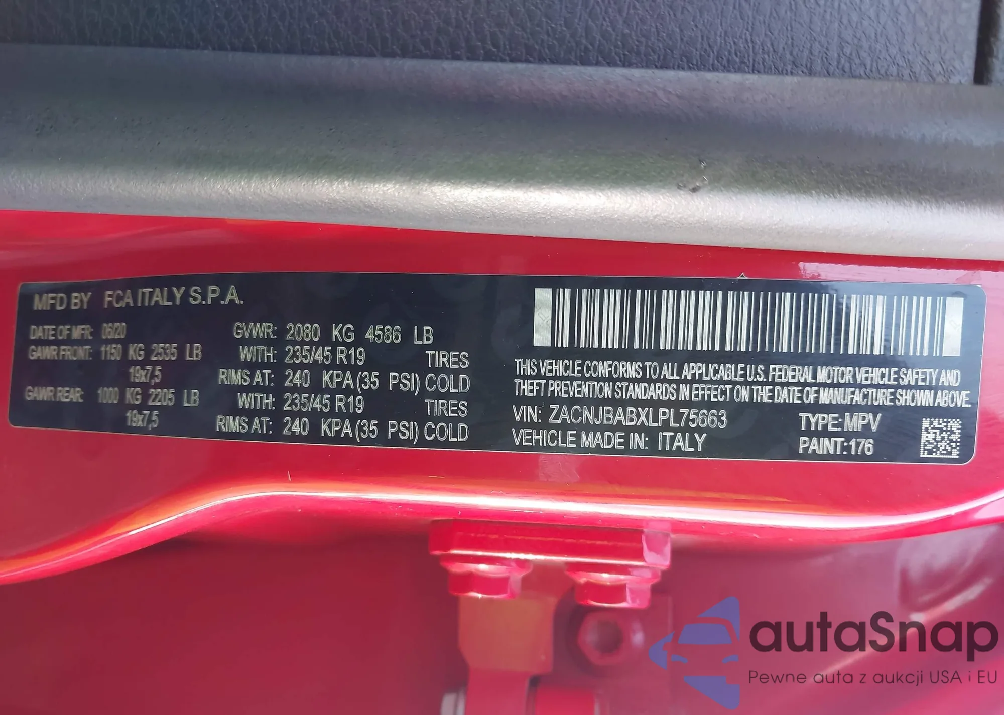 LOT: 44151783 VIN: ZACNJBABXLPL75663