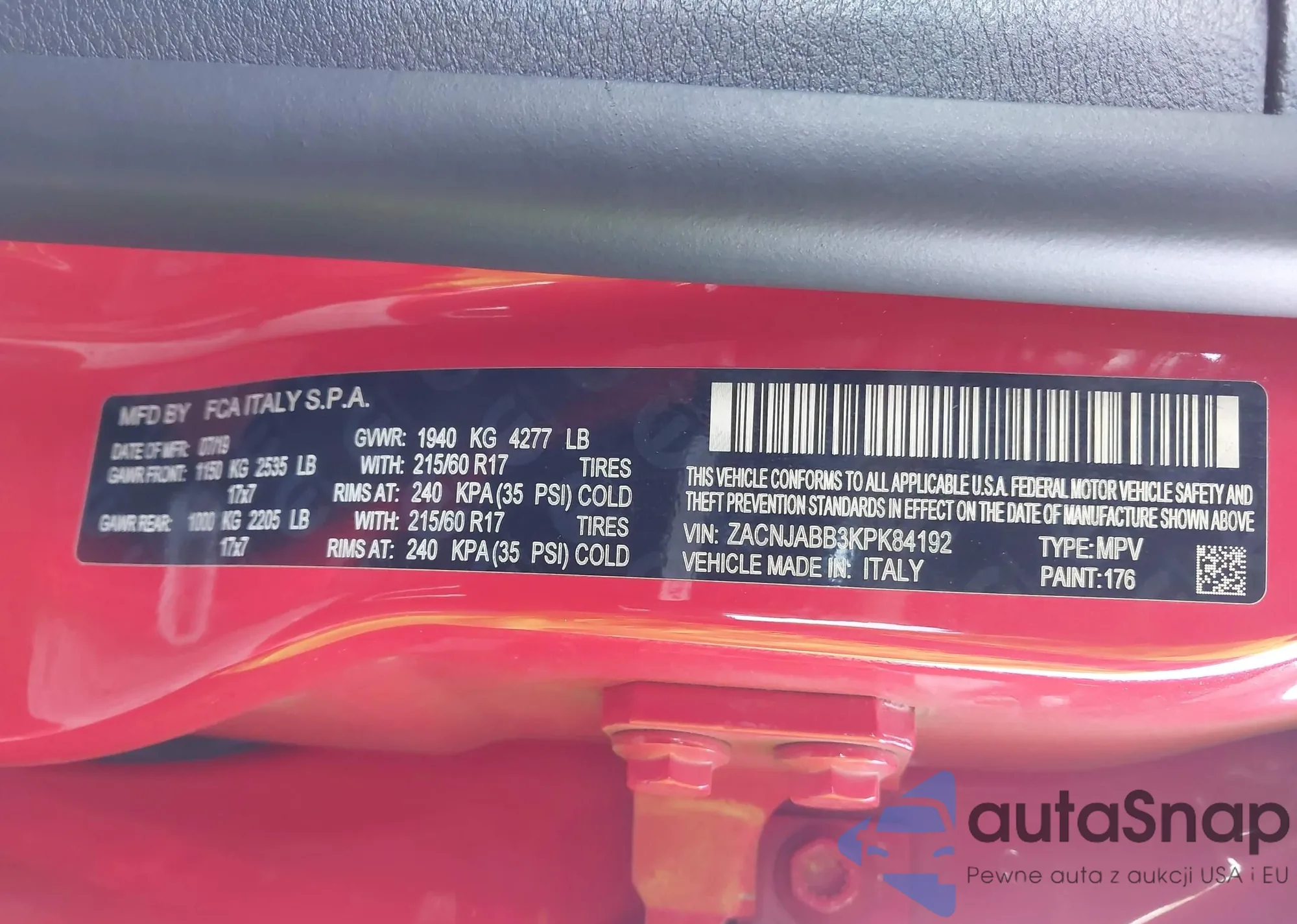 • VIN ZACNJABB3KPK84192
