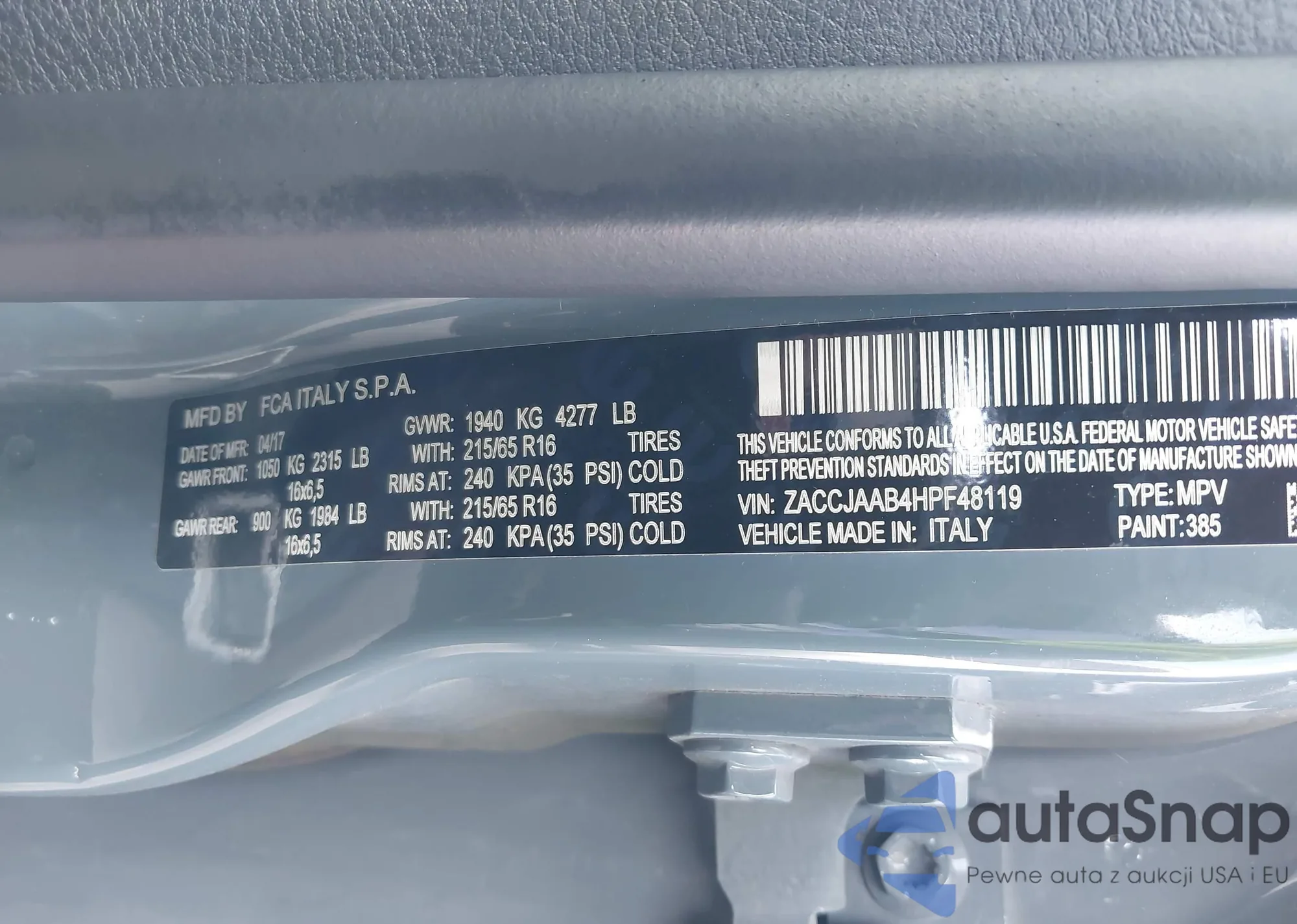 • VIN ZACCJAAB5HPG04505