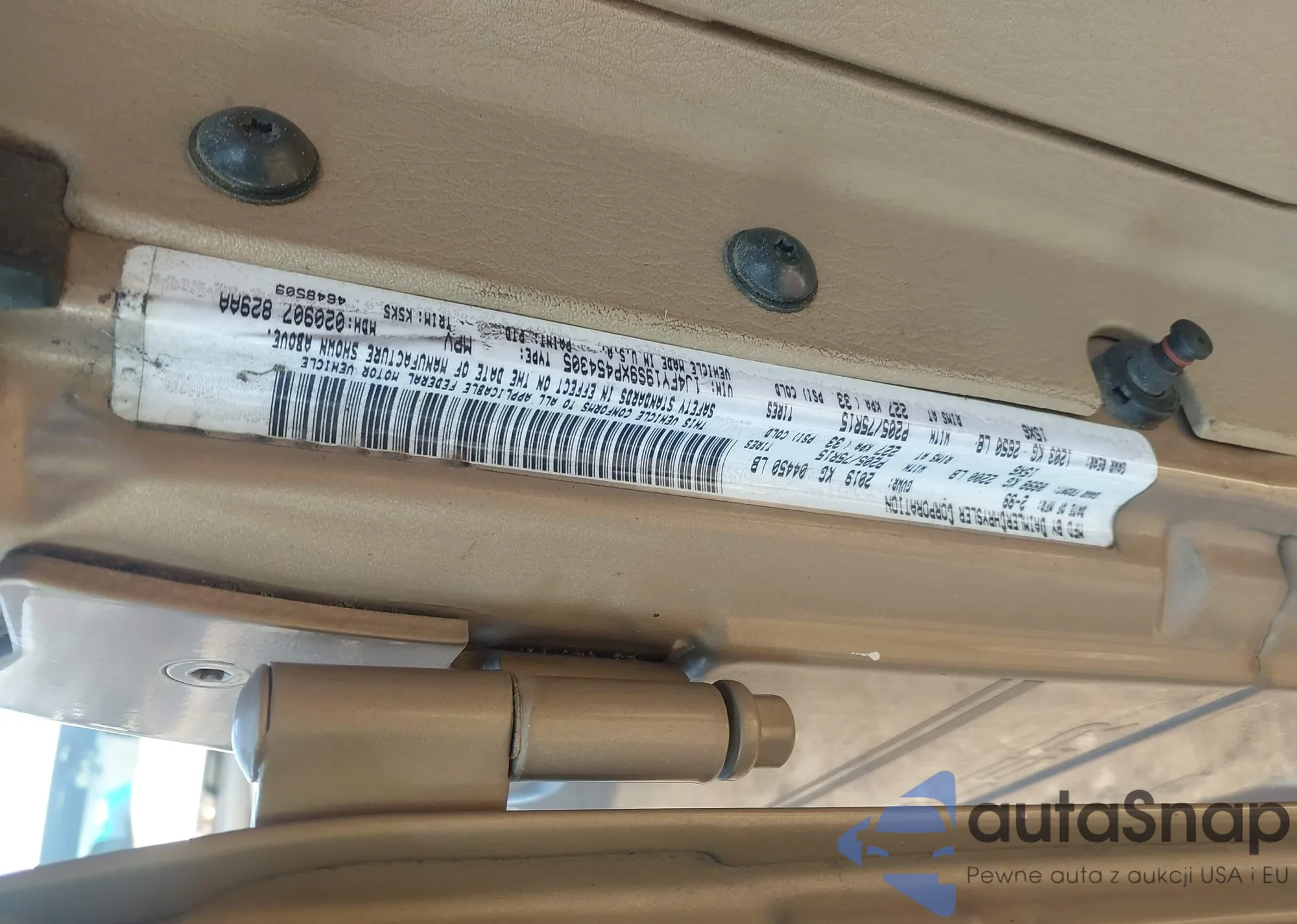 LOT: 44283689 VIN: 1J4FY19S9XP454305