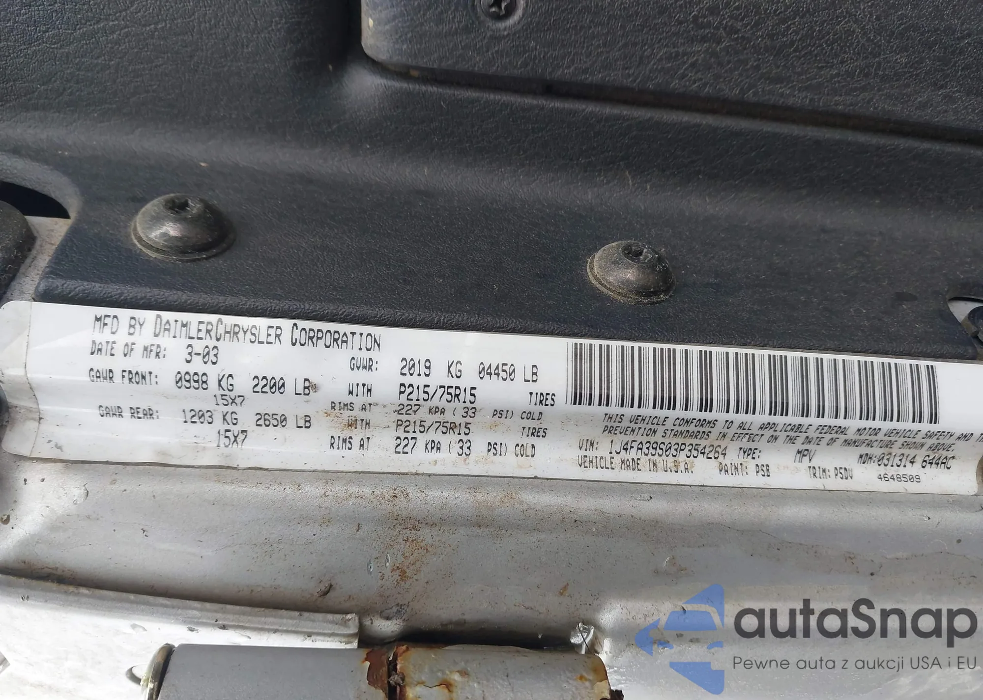 LOT: 44303250 VIN: 1J4FA39S03P354264