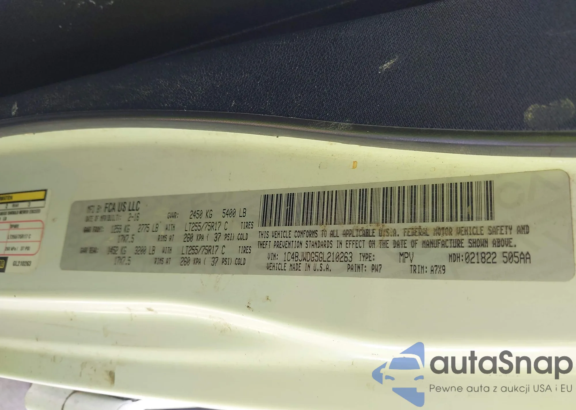 • VIN 1C4HJWEG3GL278487