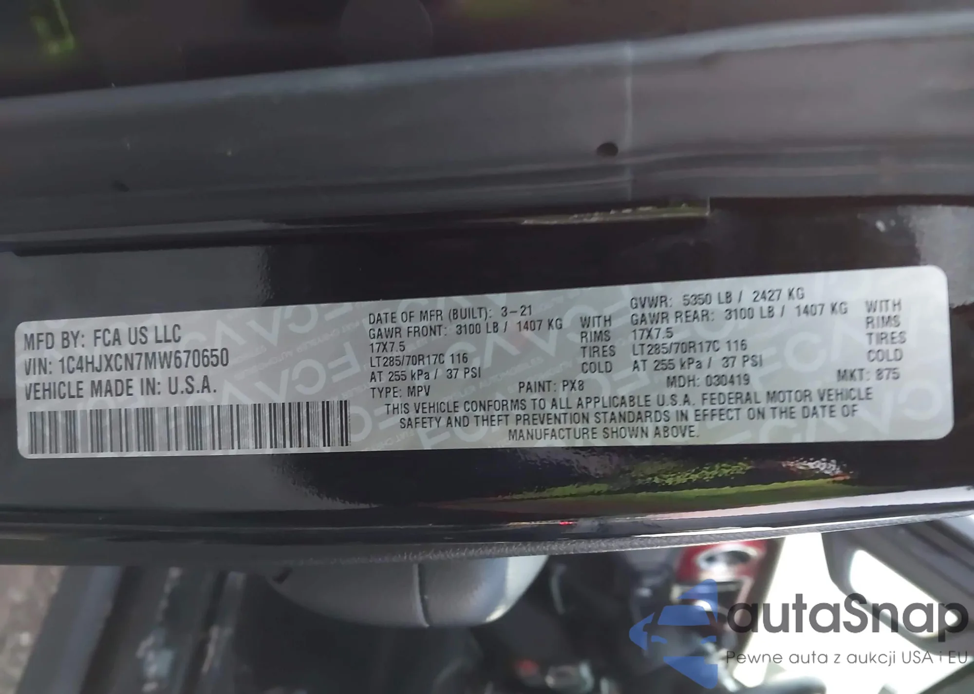 • VIN 1C4HJXCN7MW670650