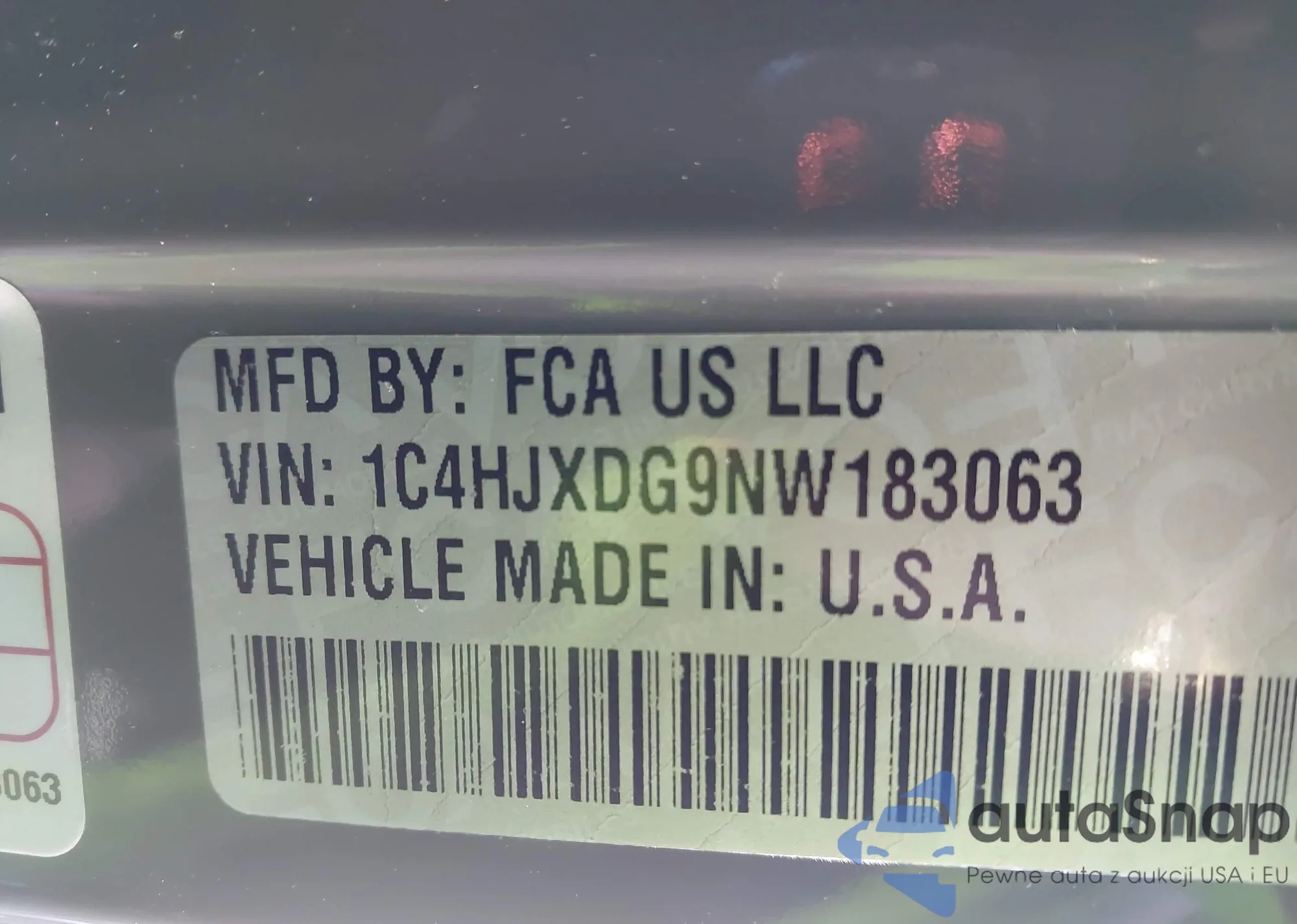 • VIN 1C4HJXDG9NW183063