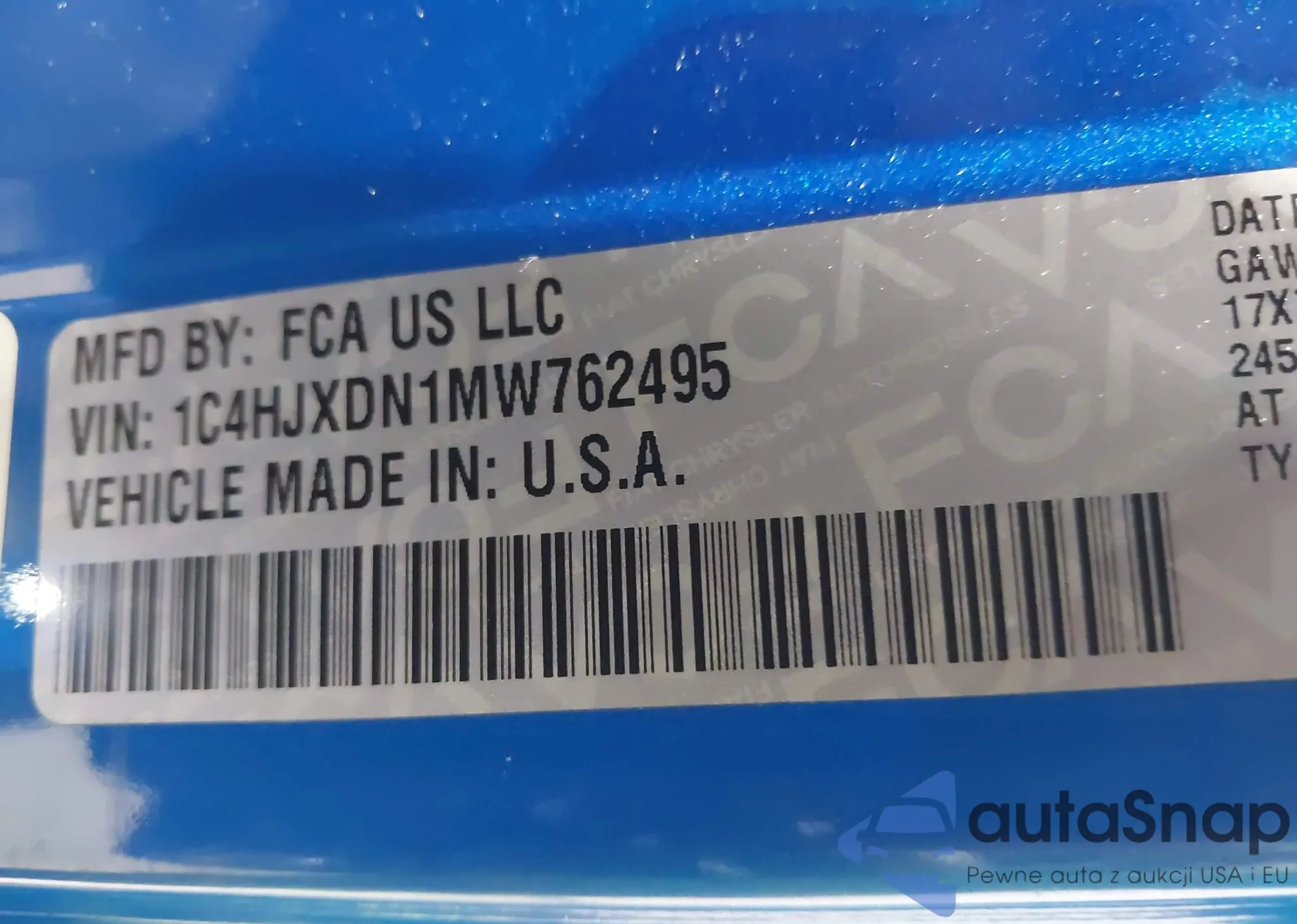 • VIN 1C4HJXDN1MW762495
