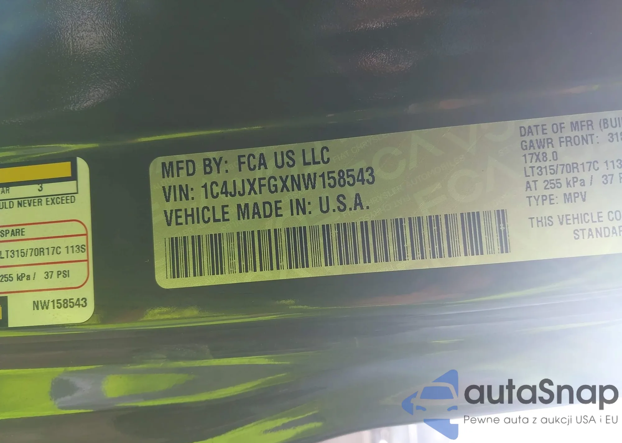LOT: 44169998 VIN: 1C4JJXFGXNW158543