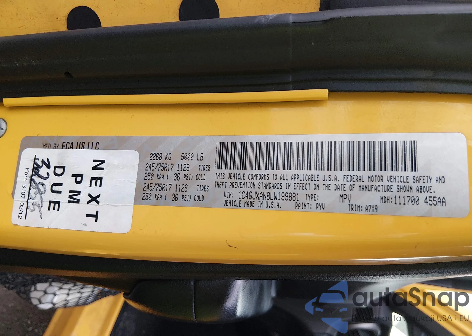 • VIN 1C4HJXDN6MW725703