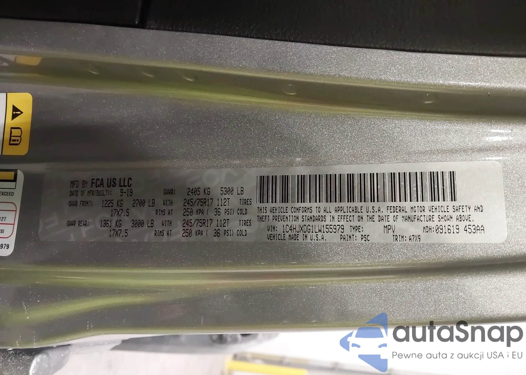 • VIN 1C4HJXDG1LW155979