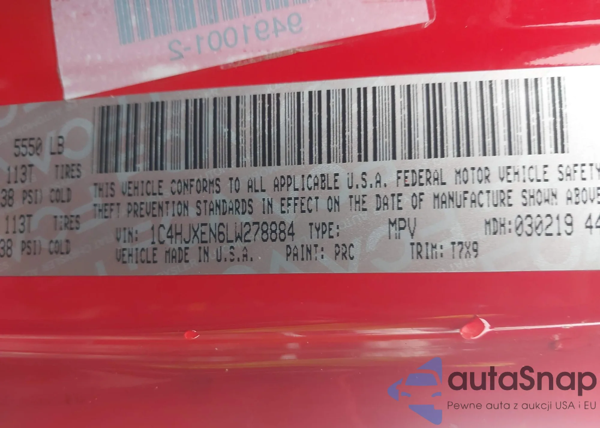 • VIN 1C4HJXEN2LW221033