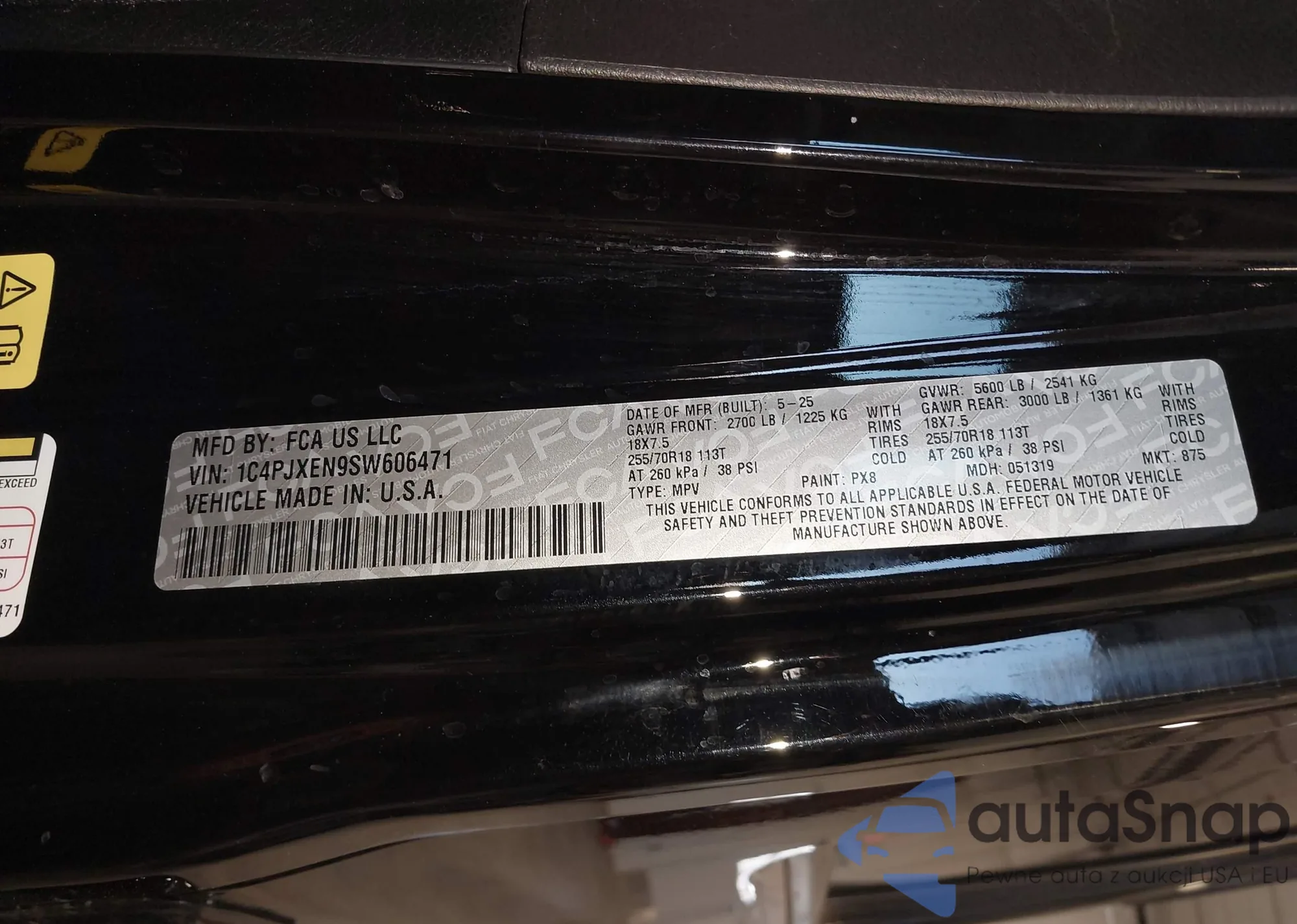 • VIN 1C4PJXEN9SW606471