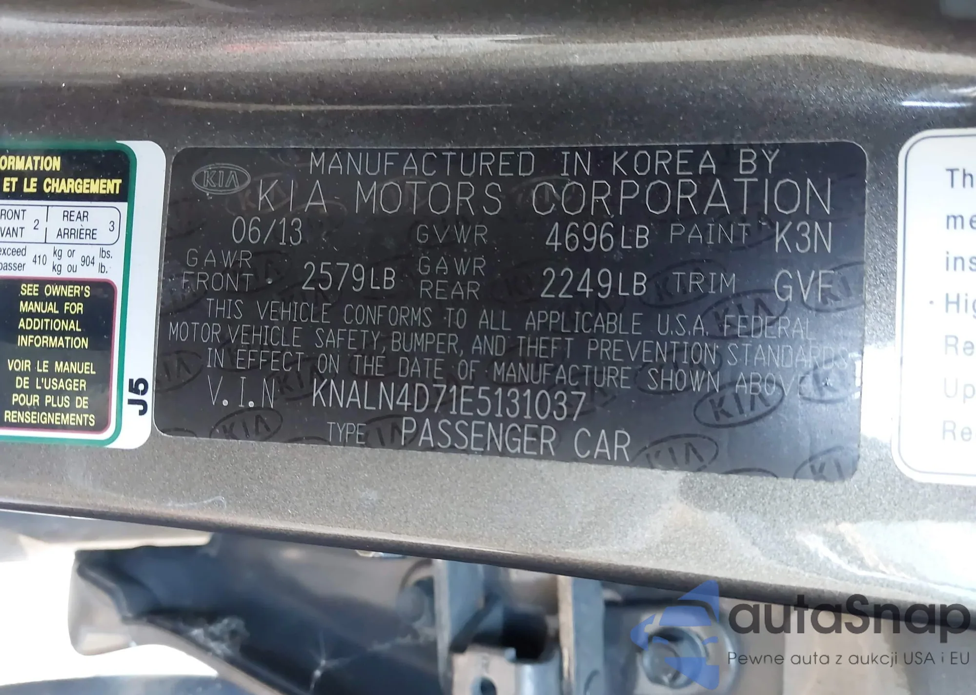 LOT: 44567832 VIN: KNALN4D71E5131037